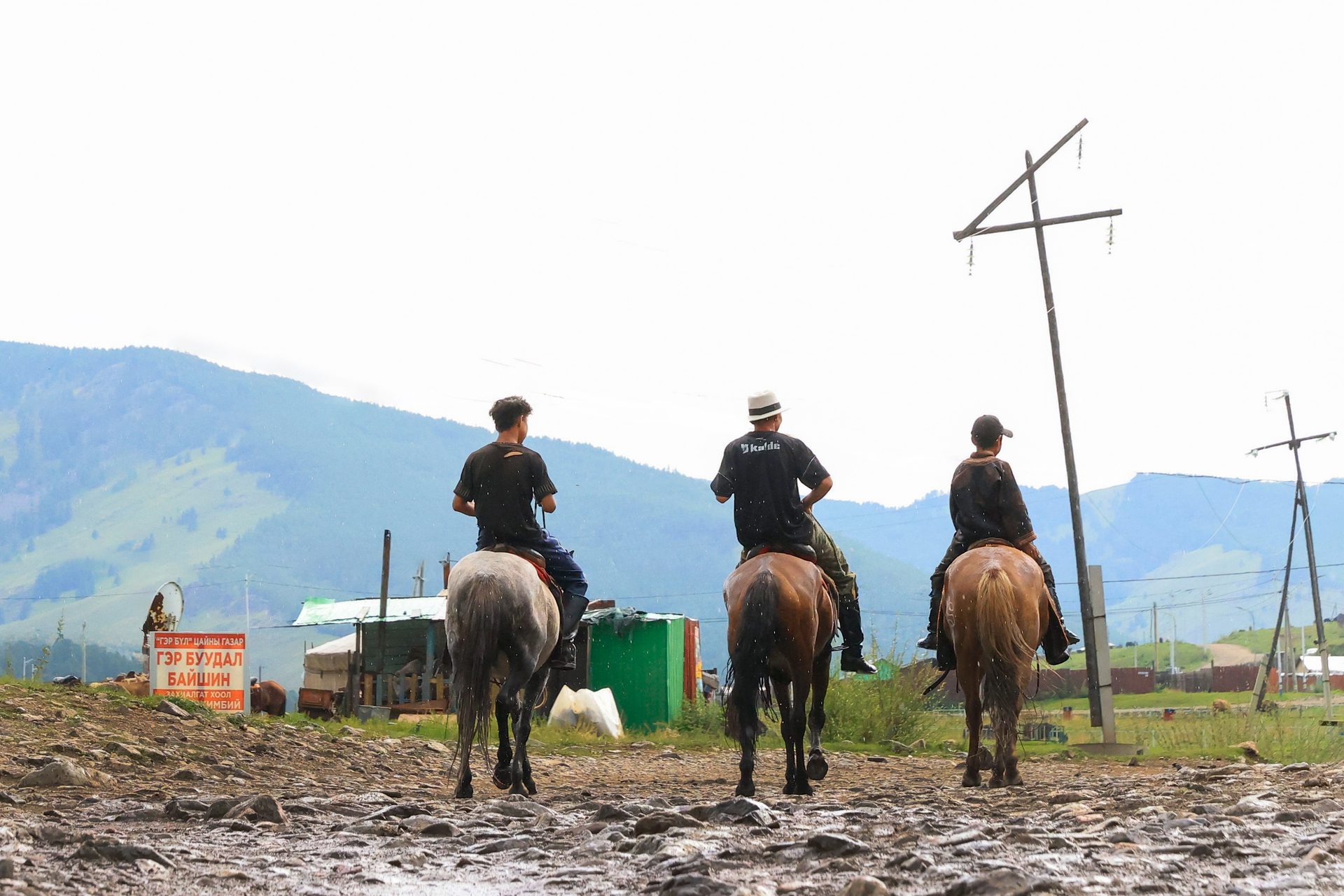 비를 맞으며 집으로 돌아가는 저녁 시간의 마부들의 쓸쓸한 모습입니다.