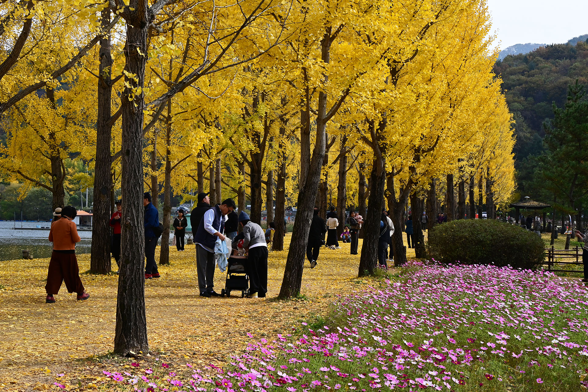 은행나무길 옆에 코스모스를 많이 심었더군요.
