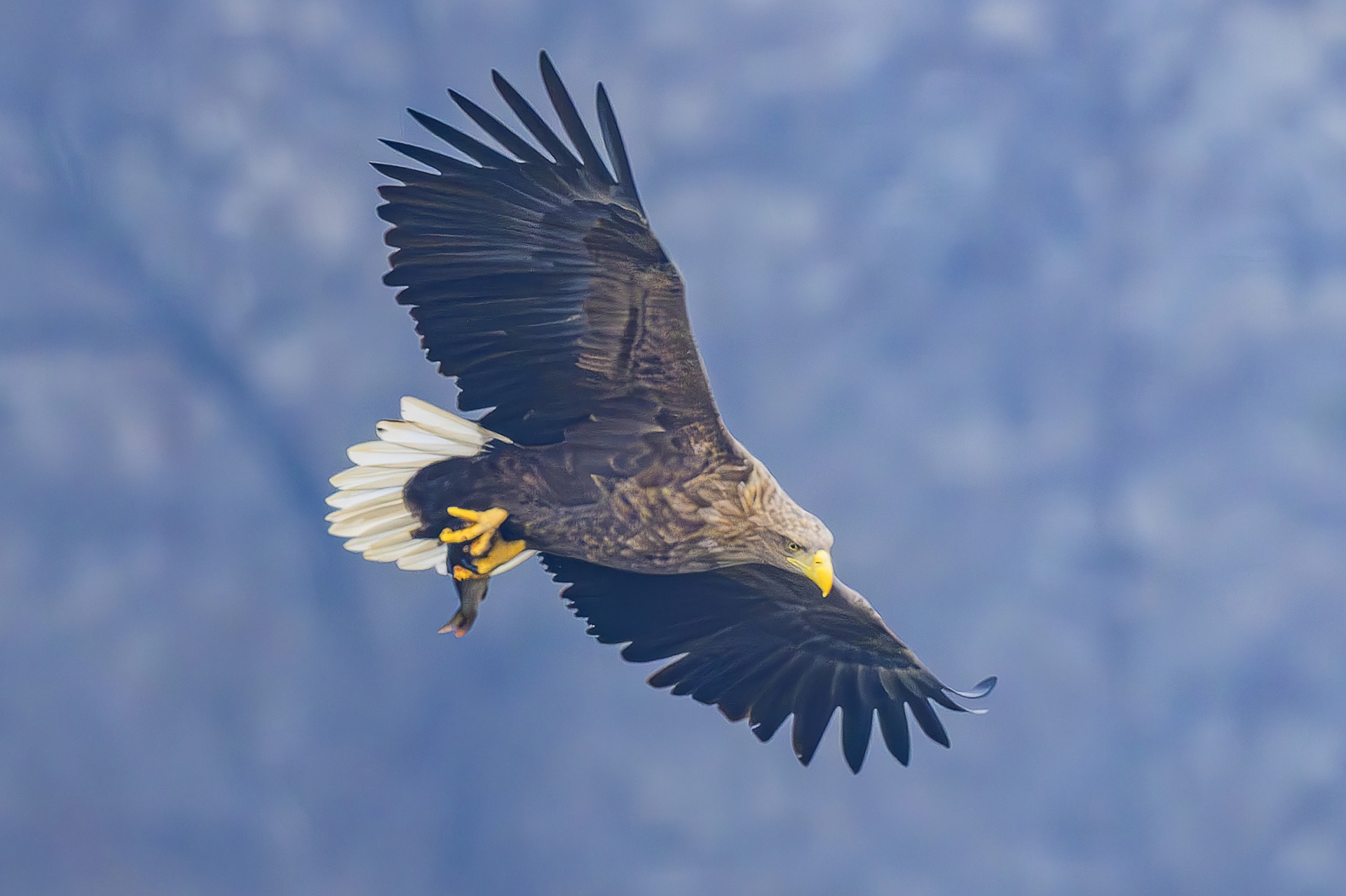 사냥감을 두발로 움켜쥐고 비행을..