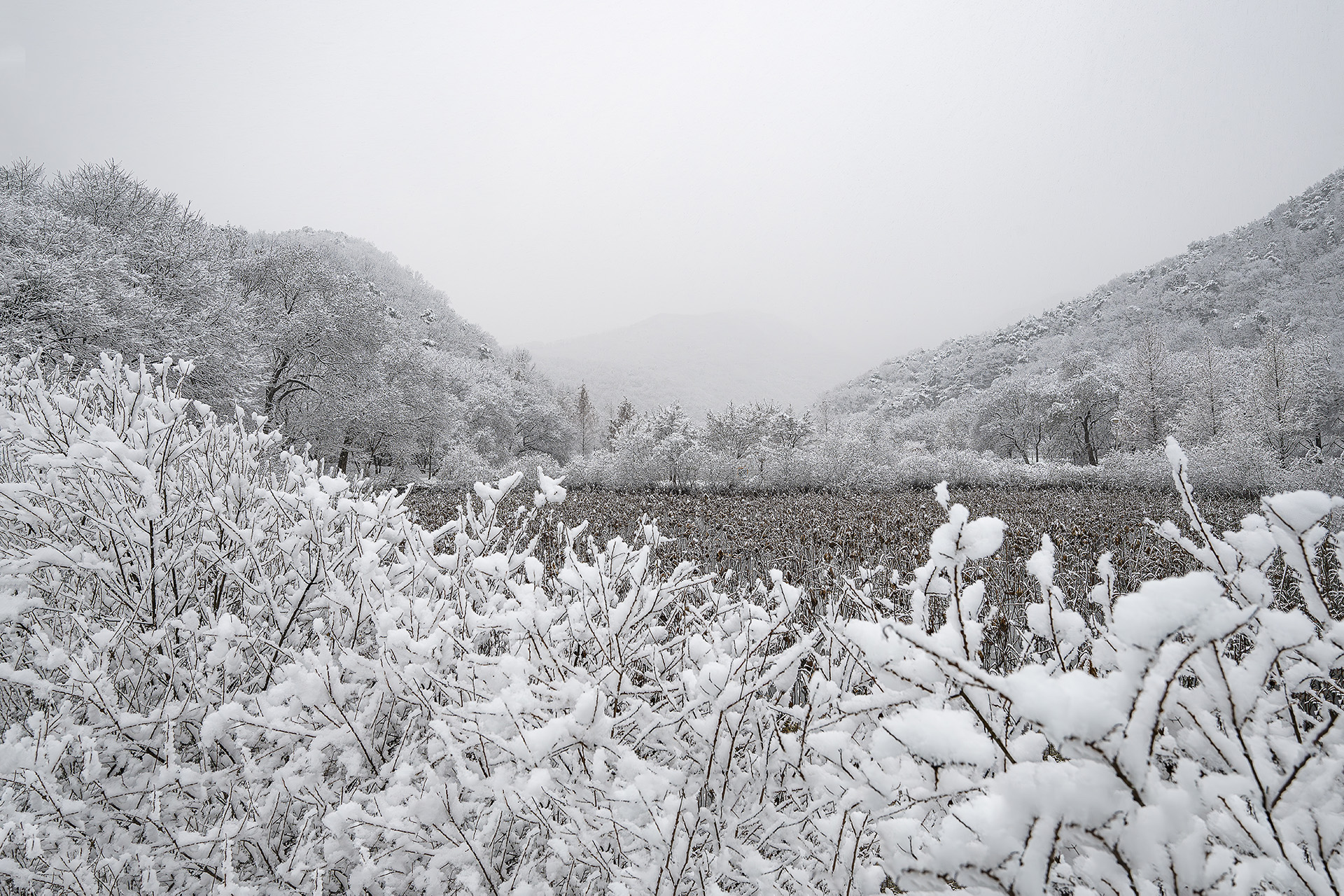 첫눈이 내린날 연지의 설경..