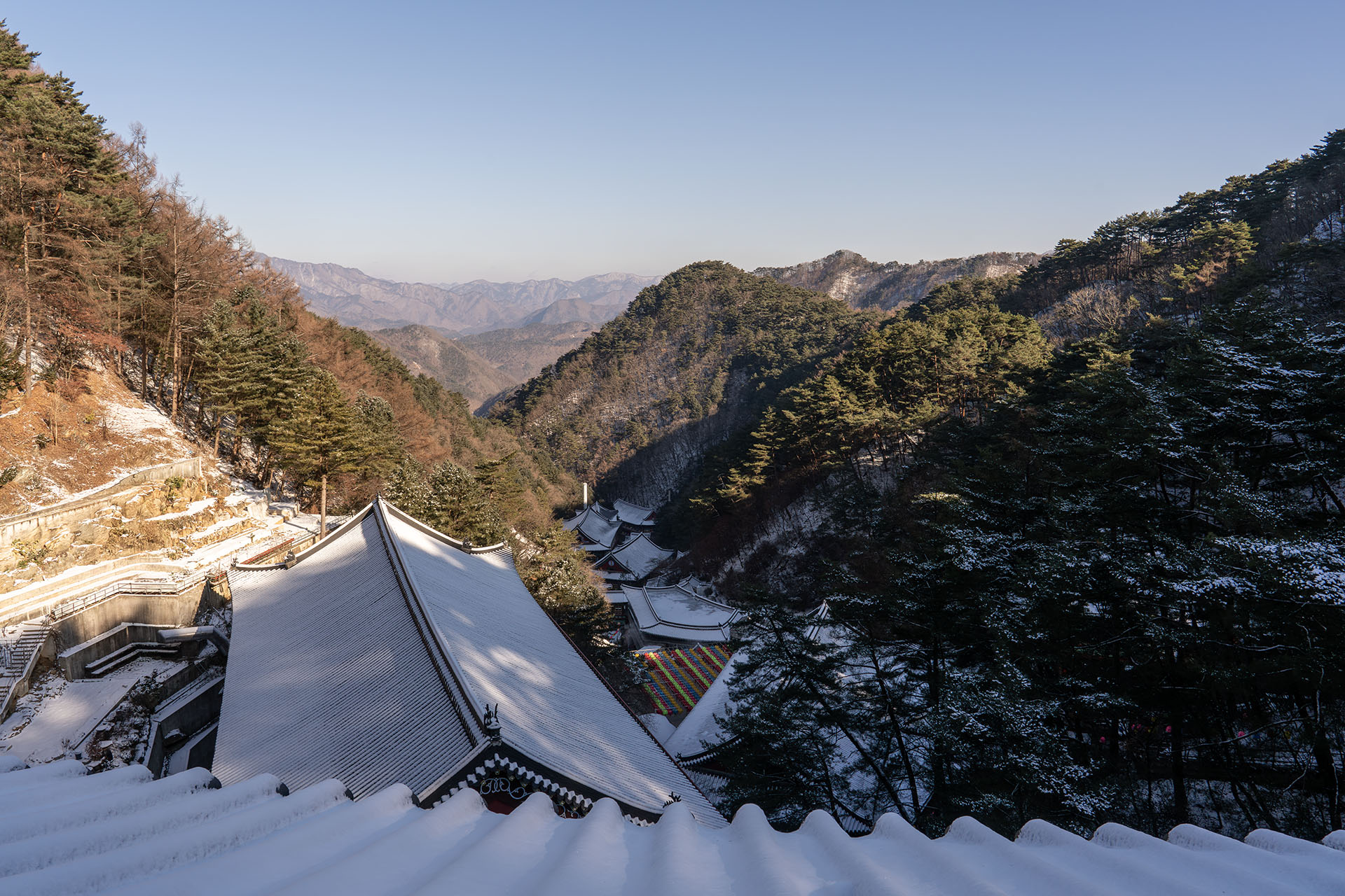 구인사는 좁은 골짜기에 위치해 있어 전경이 한눈에 들어오지가 않네요.