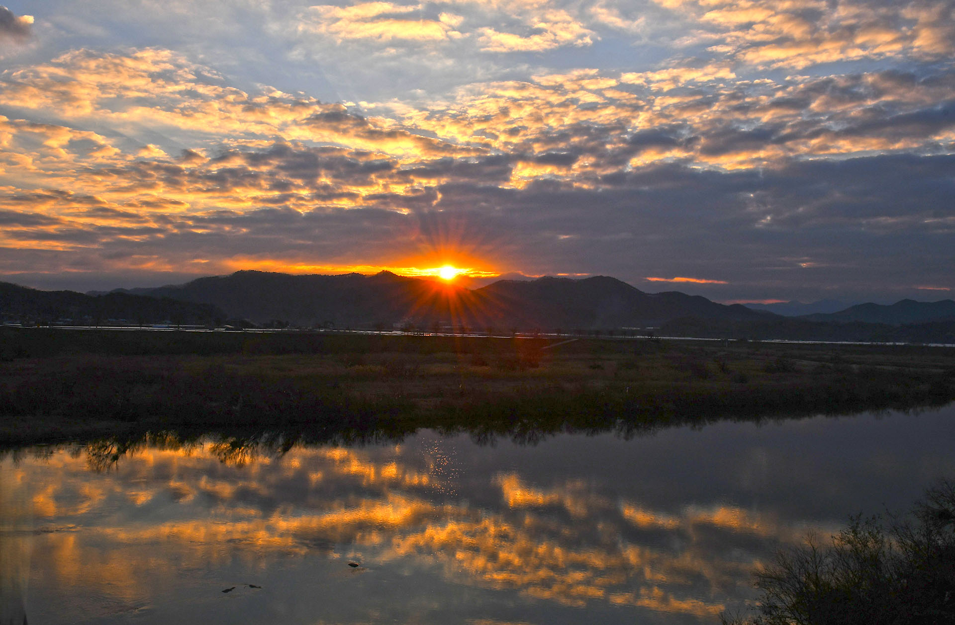 새벽아침 금강천의 여명빛이 물들은 곳에서 붉은 태양이 떠오릅니다 ~~~~~