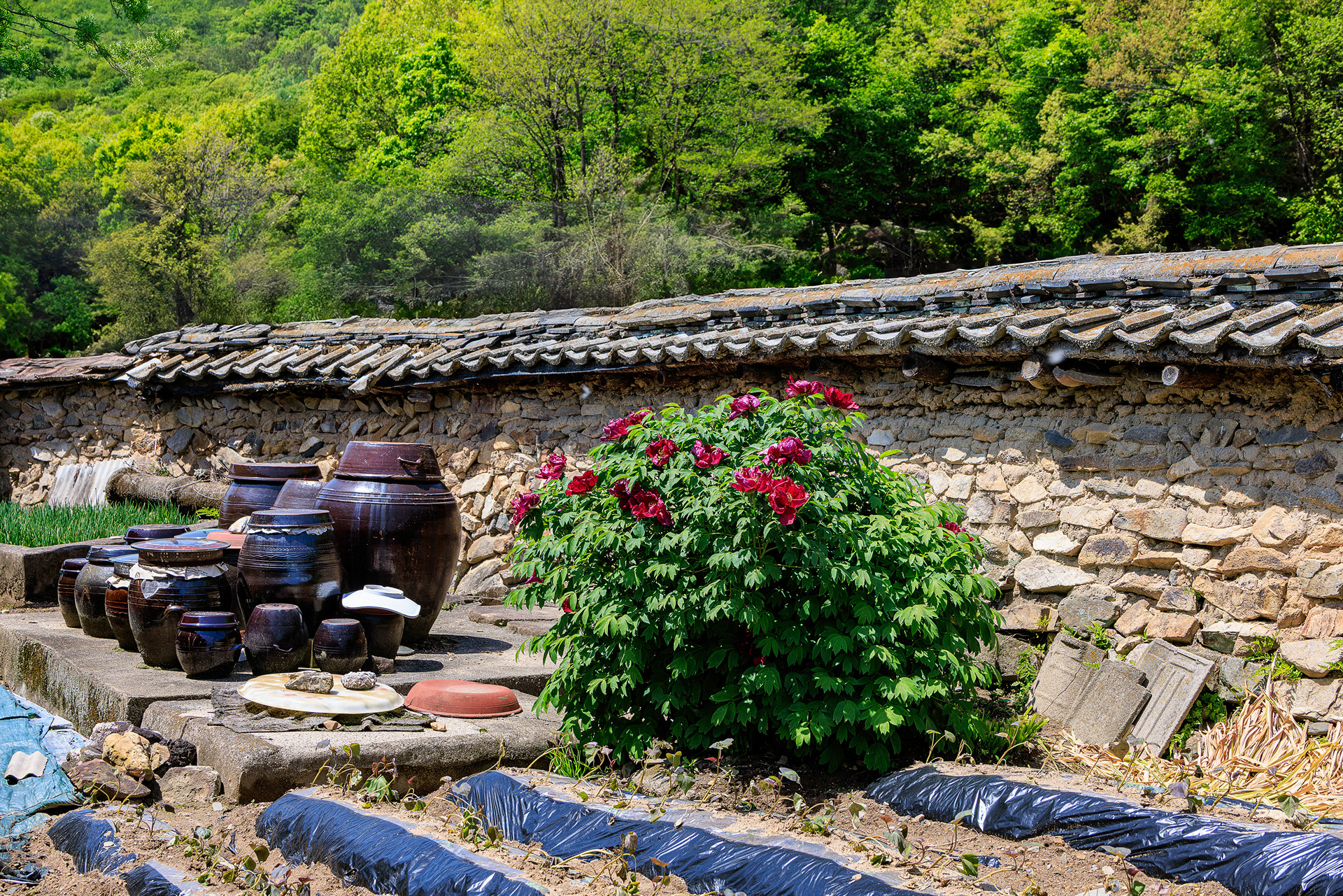 장독대와 모란