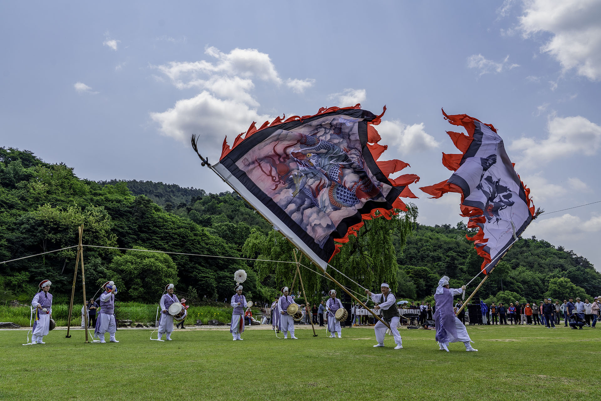 변함없이 흐르는 냇물 위 농다리에서 축제가 열렸다....