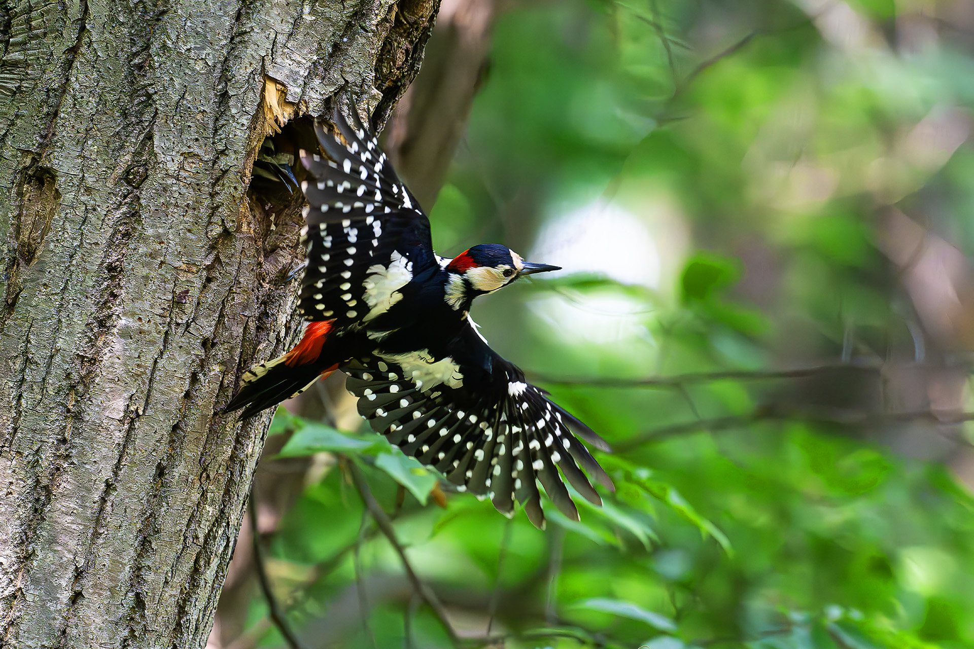 오색딱따구리 주변 경계가 넘 예민한 어미..