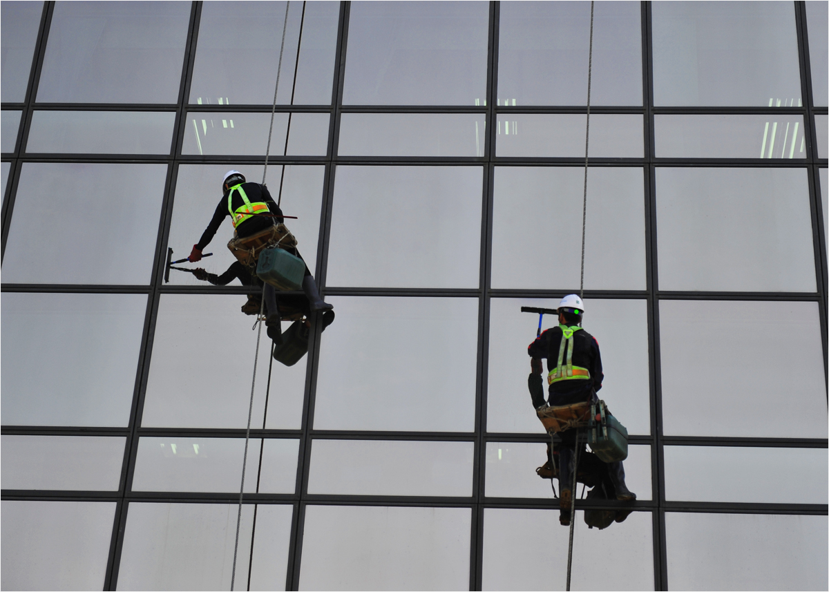빌딩 유리창 청소를 하는사람들의 삶의 열정..