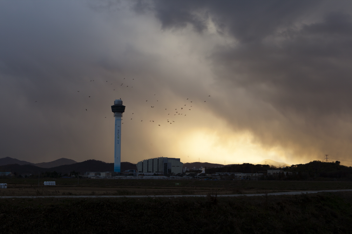 시커먼 하늘에 커다란 구멍이 생겼습니다. 그 커다란 구멍사이로 하늘빛이 내려오네요