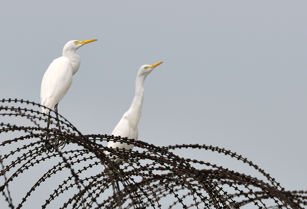 철조망 위의 황로 자매는