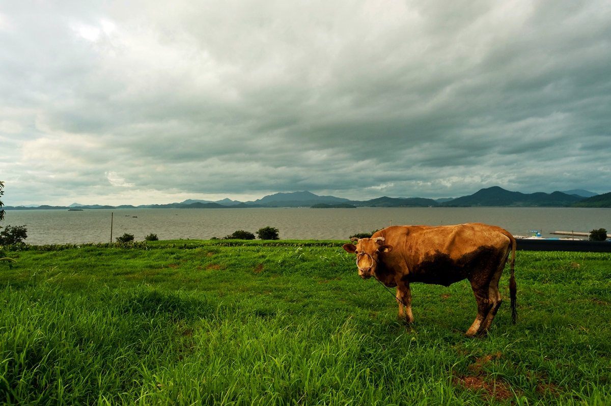 시원한 바다와 드넓은 초원이 있는 곳에 소 한마리의 편안함을 담아 봅니다