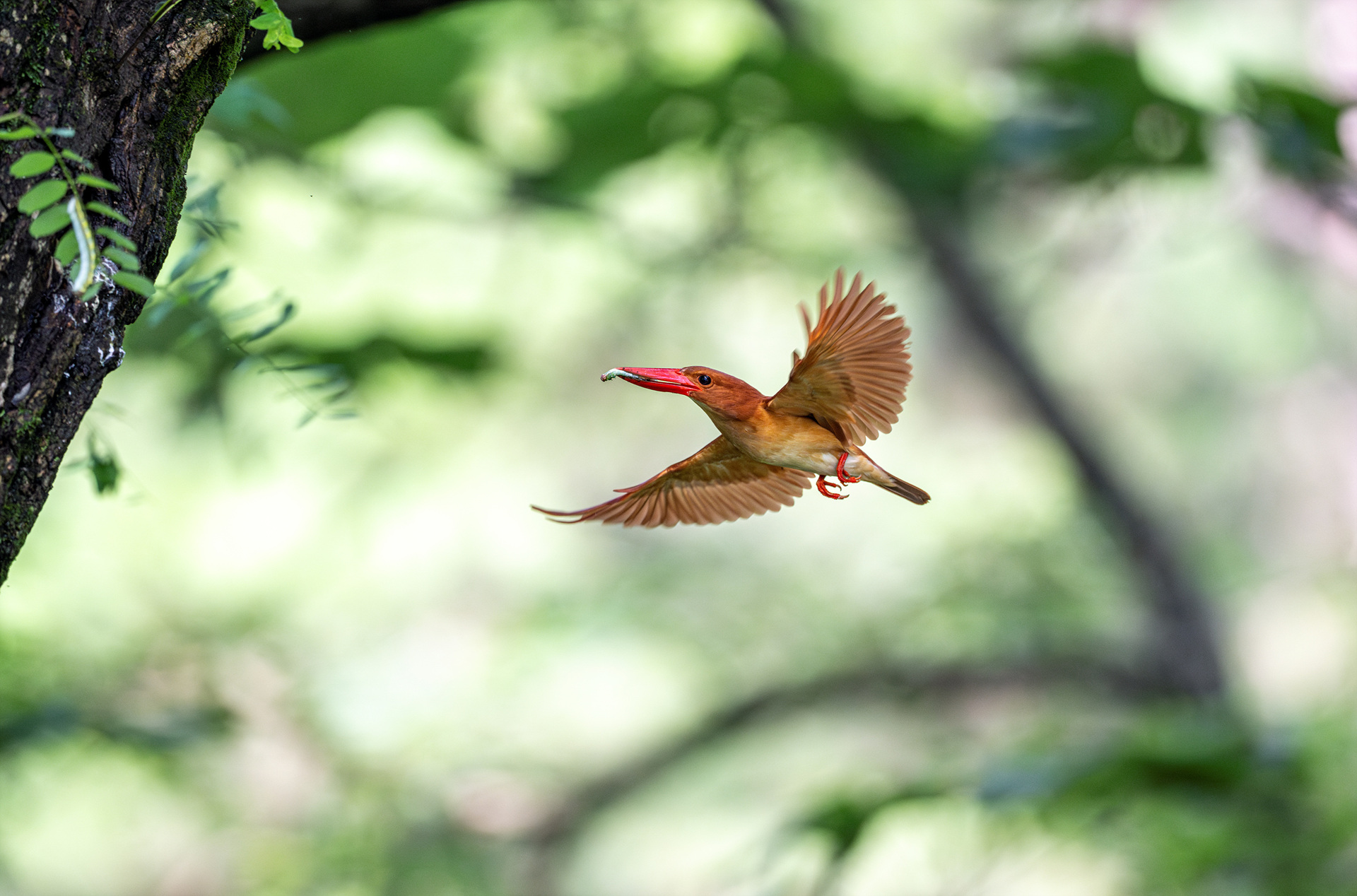 호반새가 새끼들 먹여 살리려고 부지런이 먹이를 물어 나르네요...