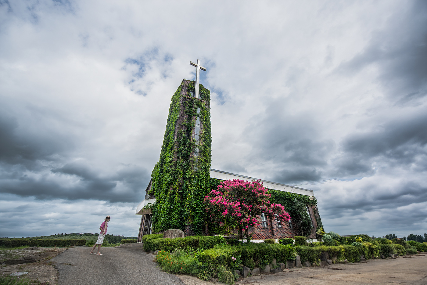 교회 담쟁이 배롱나무 풍경입니다