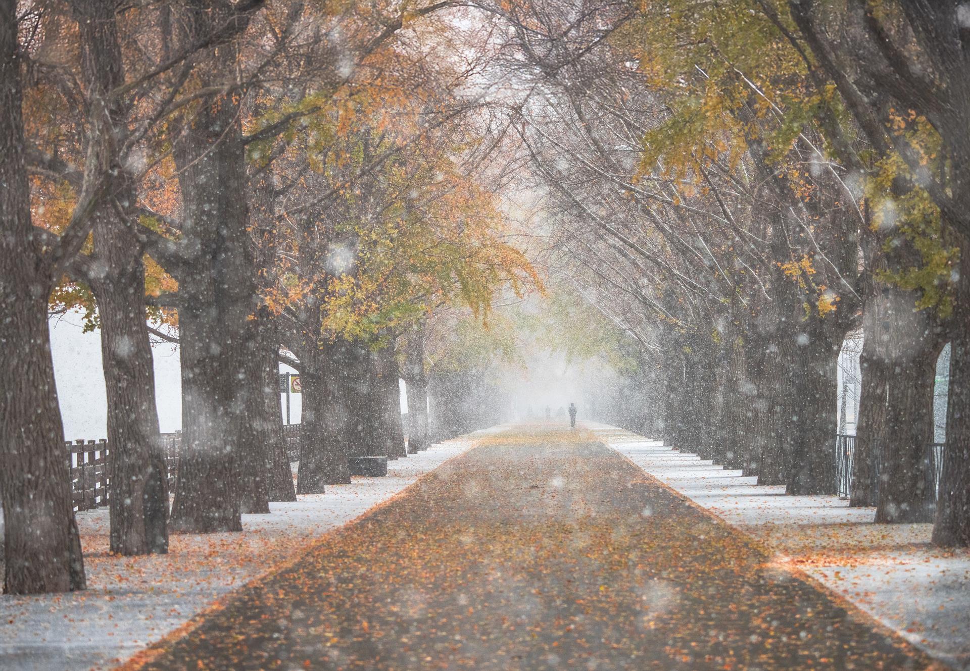 은행나무길 설경 풍경입니다