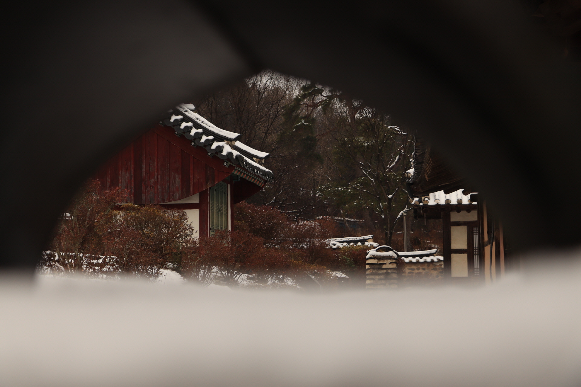 옛 굴'뚝에도 눈이 쌓였다. 틈새사이로 바라보니 또 다른 모습을 보여주는 사계고택