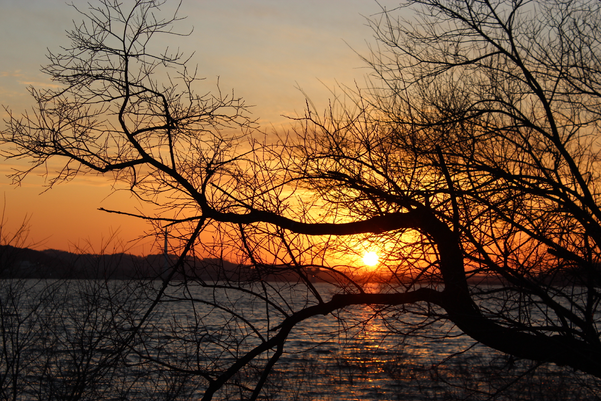 호수에서의 저녁노을
