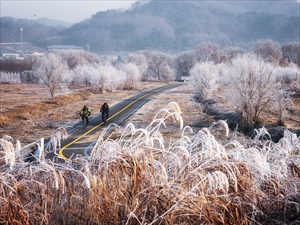 이른아침 차가움속에서 따뜻한 햇살 비추어진다