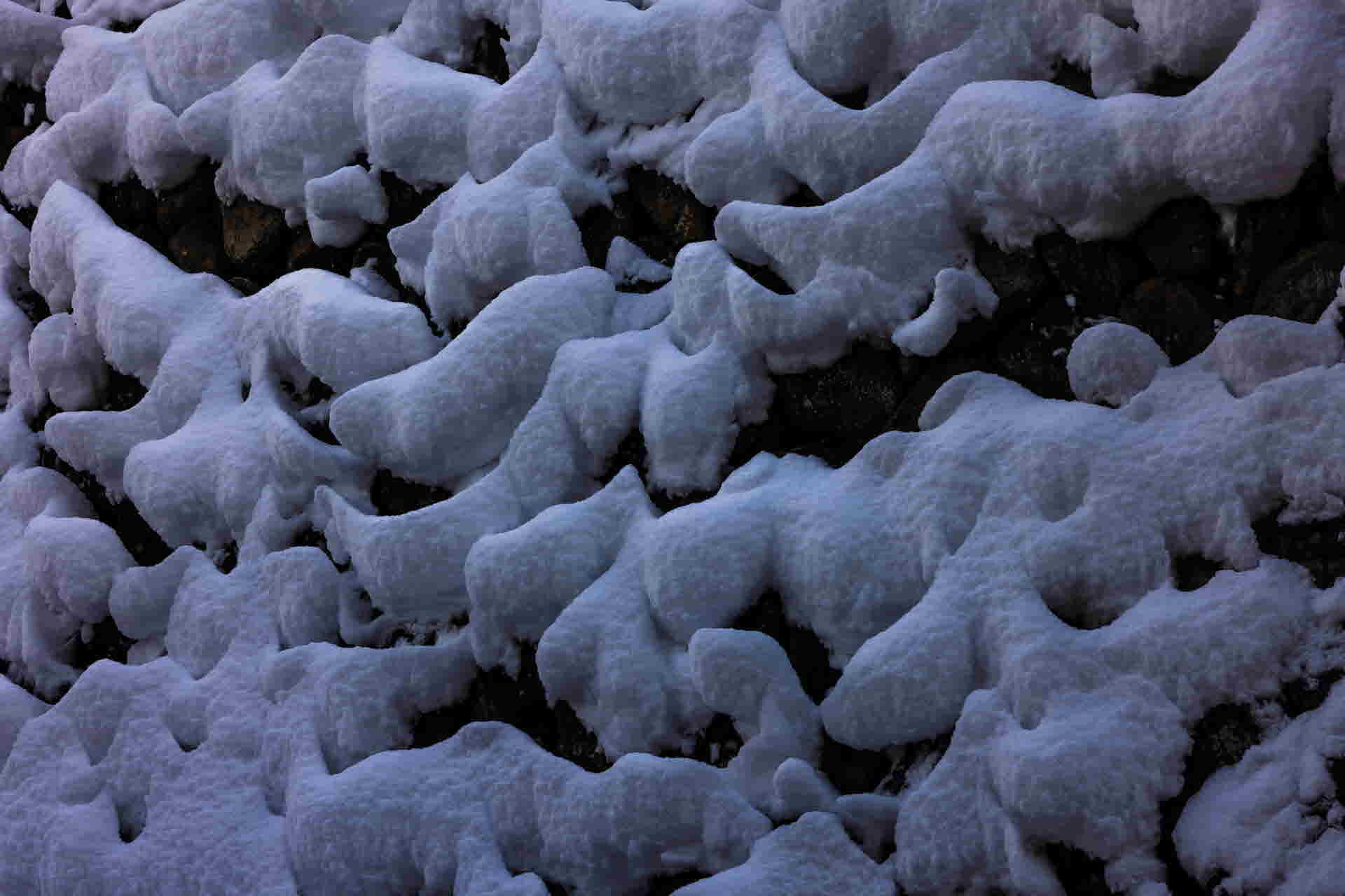 담장에 쌓인 눈이 한 무리의 양떼를 연상케합니다.