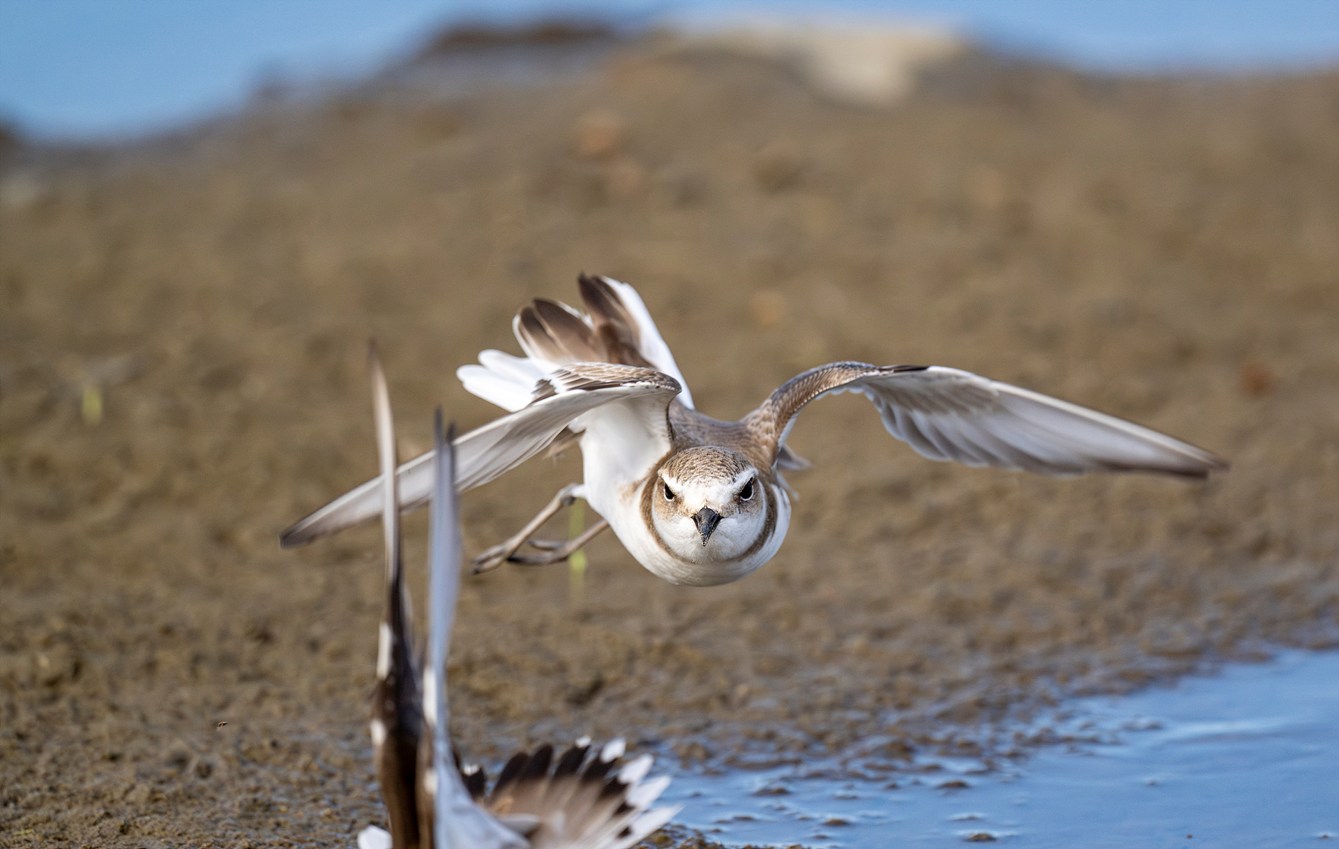 꼬마물떼새를 쫓아가는 흰물떼새... 조그만 물웅덩이를 두고 영역 싸움인 듯~