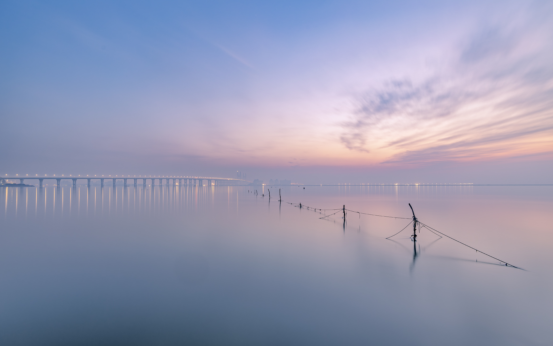 하늘빛이 드리운 서해대교 여명