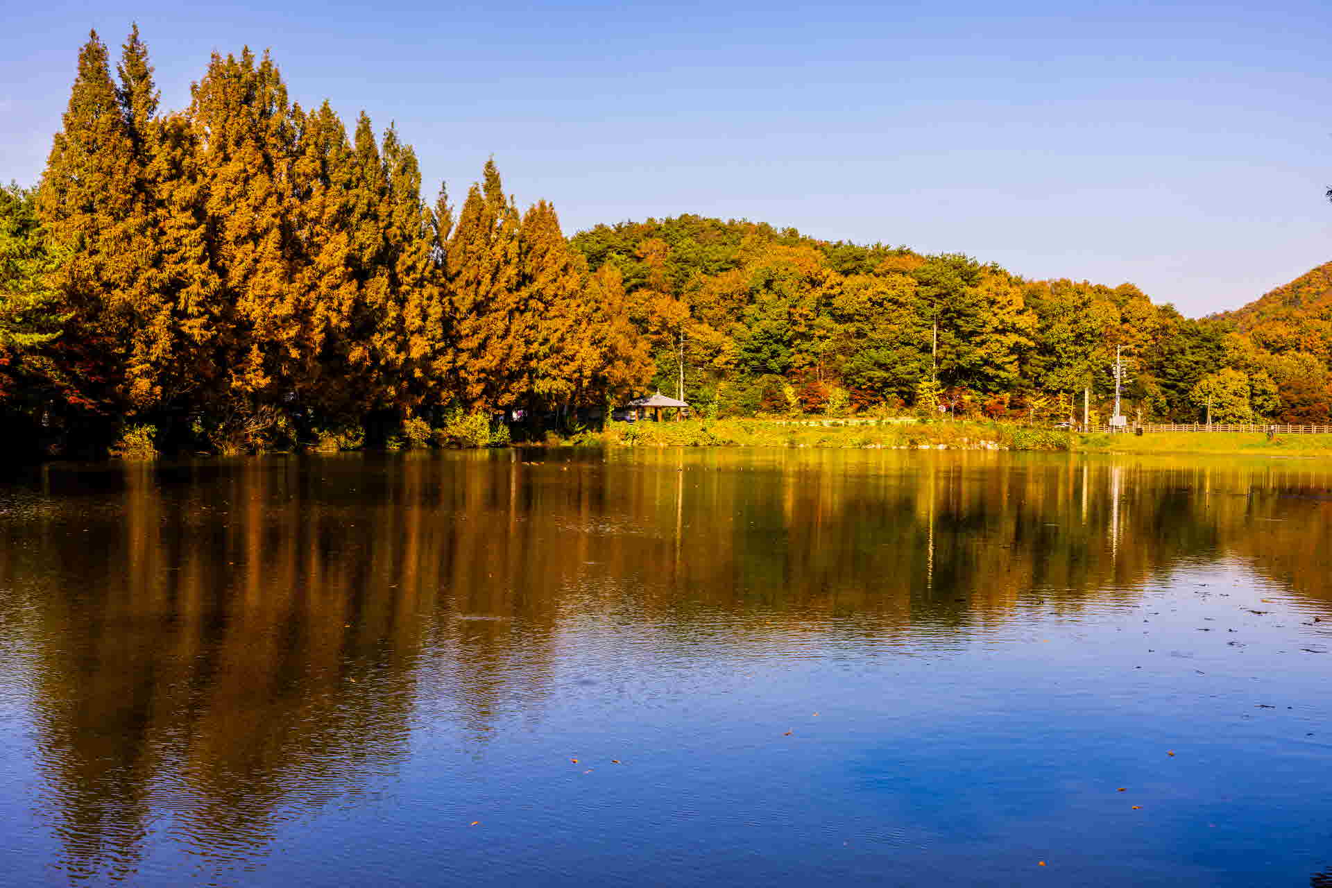 입암지에 가을향기가 솔솔 피어오르기 시작하는 시점의 모습입니다.