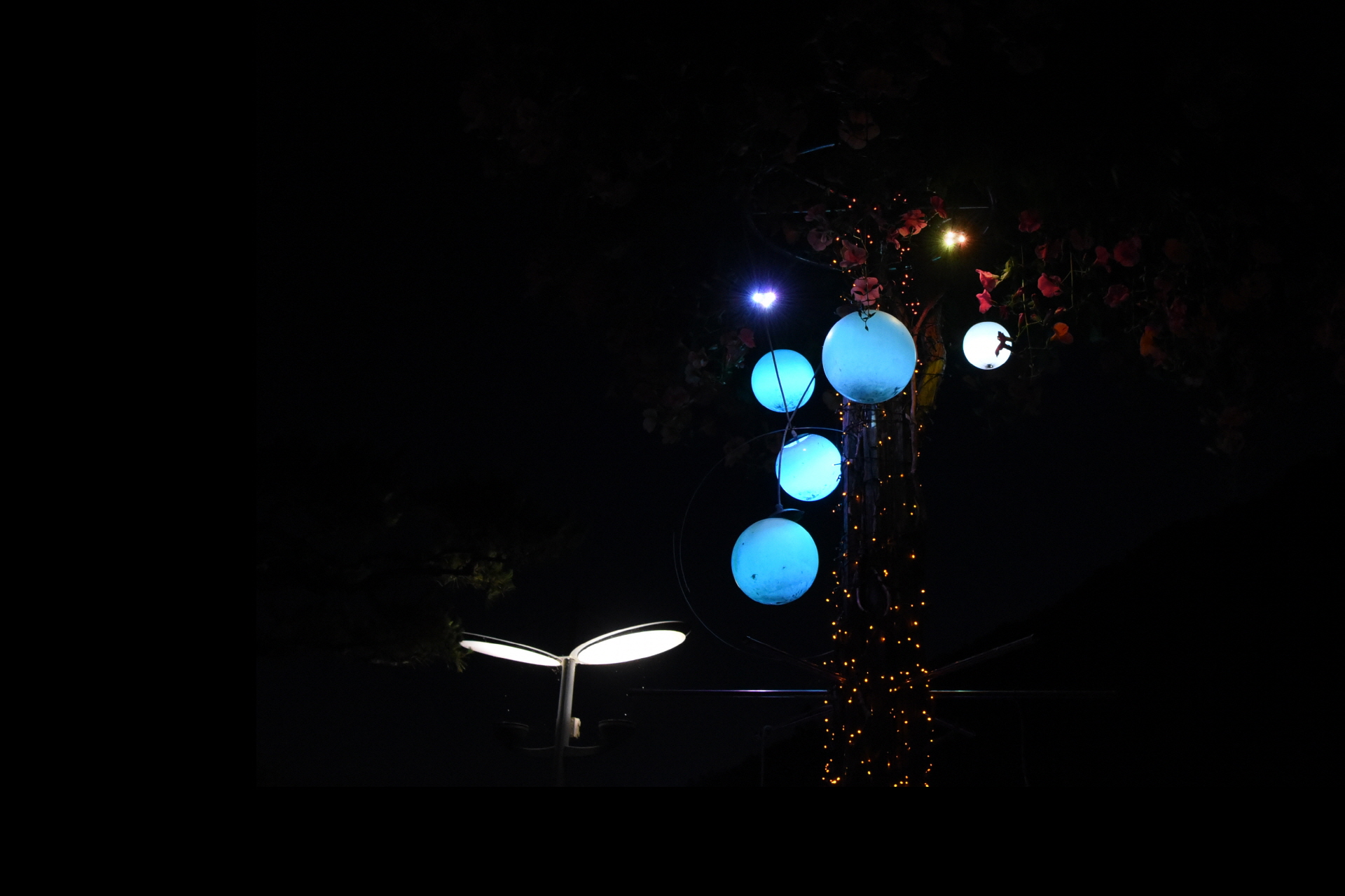 조명은 은빛으로 비추고 꽃잎은
