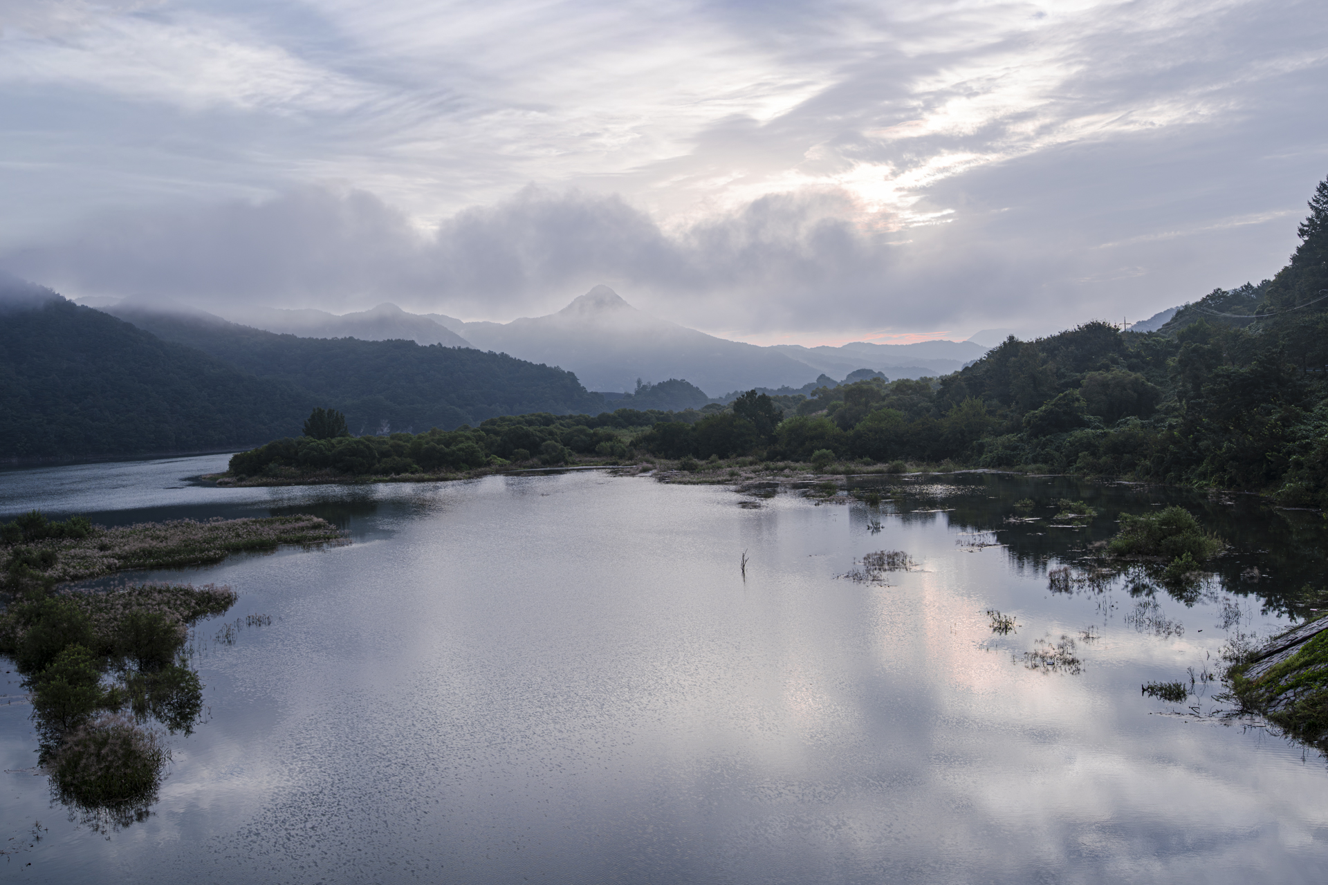 용담호에 구름이 자욱합니다