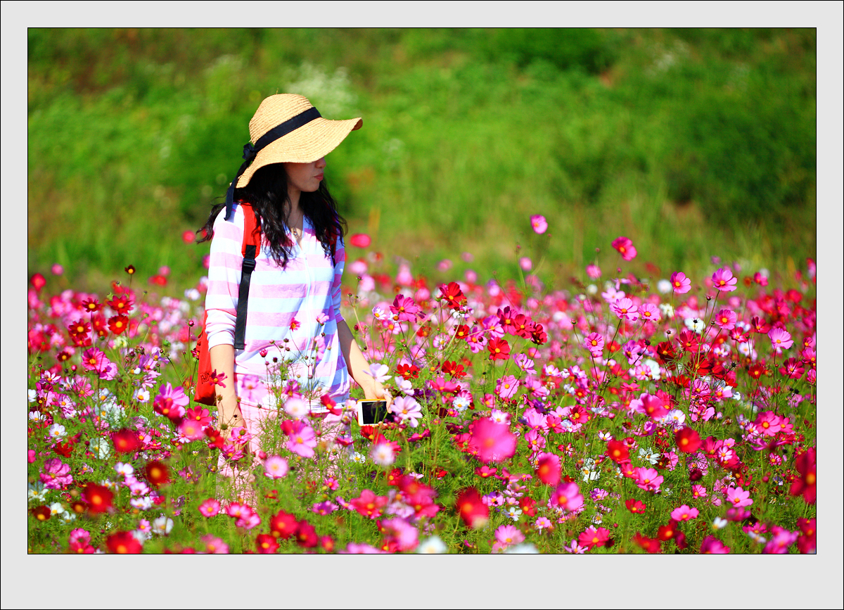 코스모스와 어우러진 여인의 아름다운 모습에서