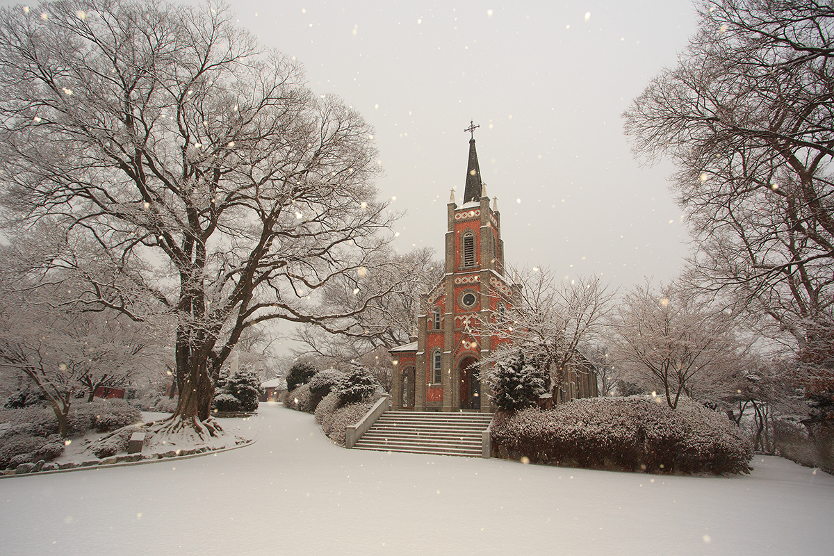 인적없는 눈 내리는 공세리성당...