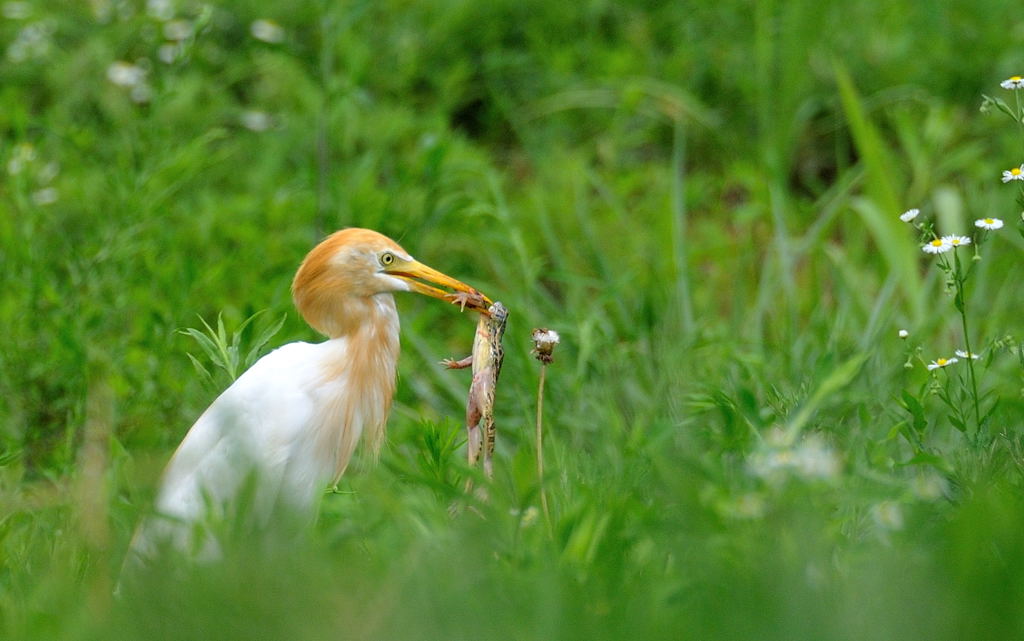 황로에게 잡힌 참개구리