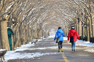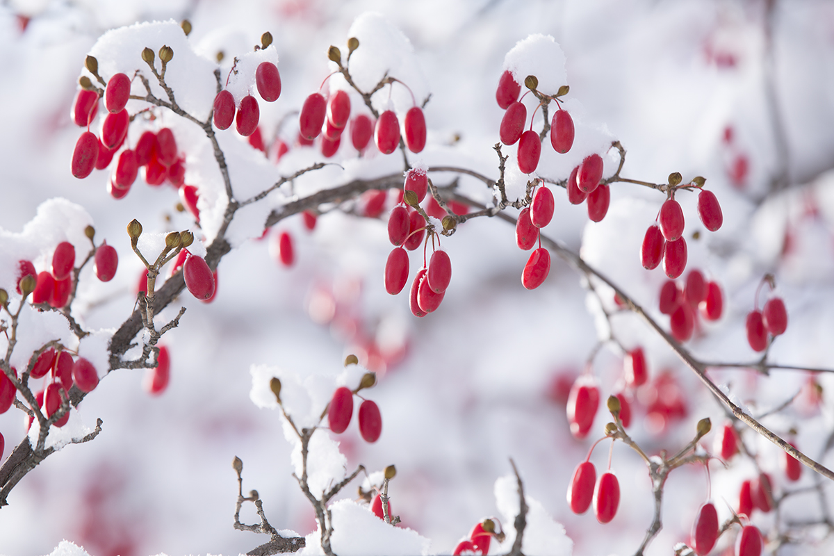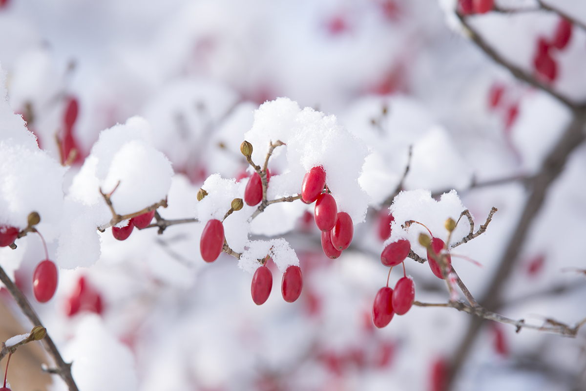 하얀 눈쌓인 빨알간 산수유가 탐스러워 보입니다.