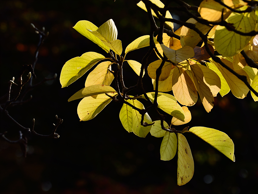 비슷한 목련 잎 단풍 3개 사진(차례대로 A1, A2, A3) 중에서 가을 분위기를 가장 잘 보여주는 것은? (A1, A2, A3 중 1개), 모두 자연광 촬영