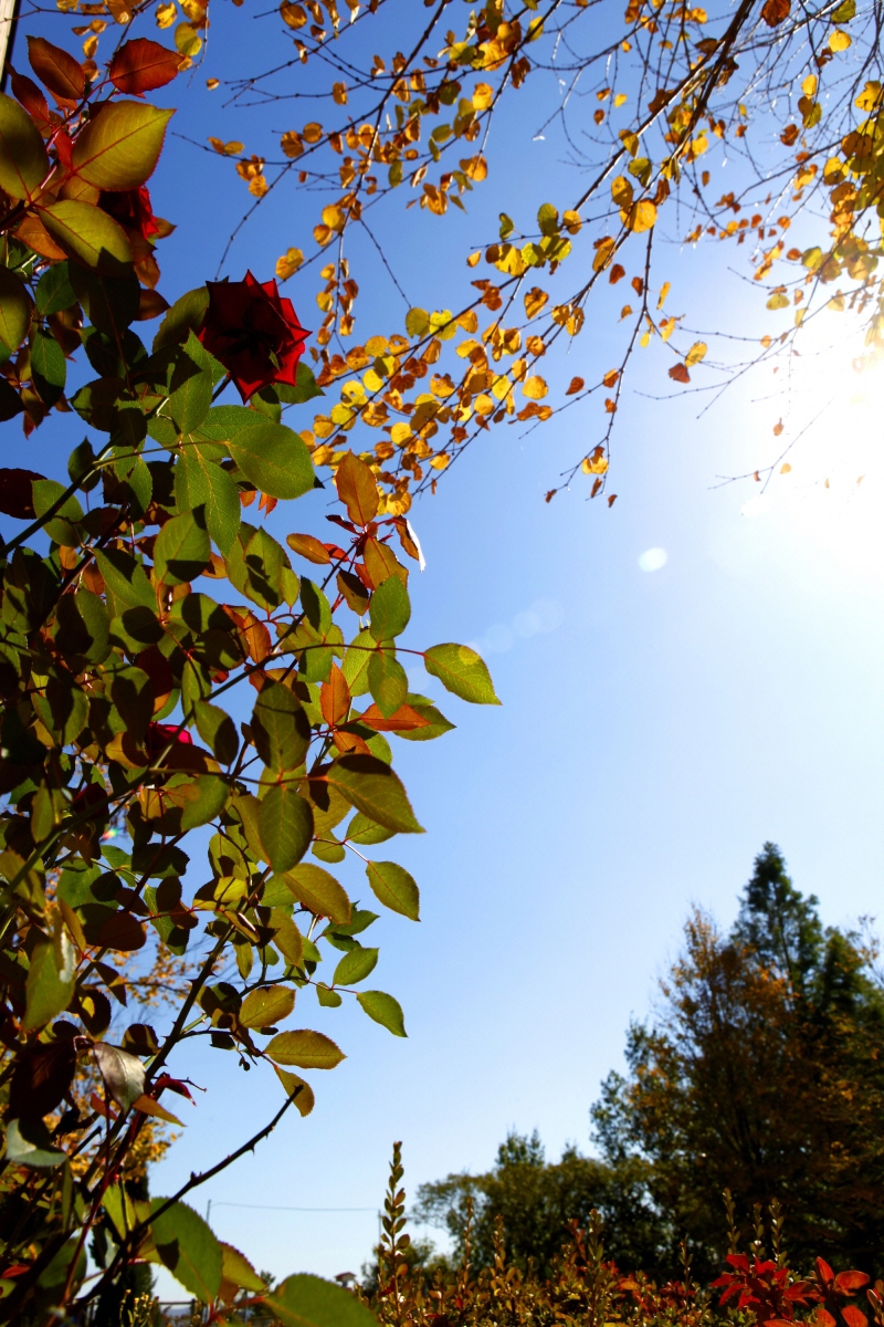 가을장미가 가을빛을 즐기고 있어요.