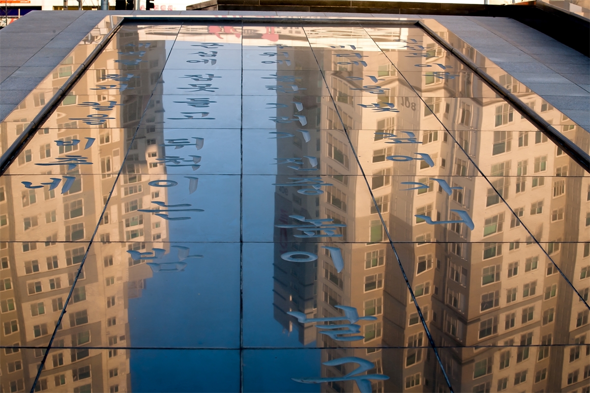 수많은 사람들이 성냥갑 같은 상자속에서 각각 살고있다. 옆에서도 앞에서도 보이지 않는 그들만의 세상 그들에게 소통의 징검다리 처럼 놓여진 모습..... 아주 적은 고인물에 커다란 아파트도 쏙 들어가있다..