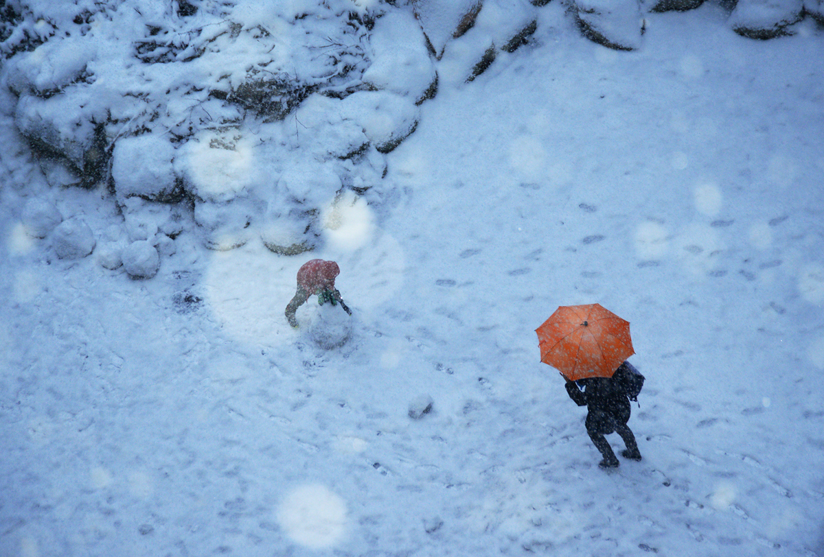 엄마 나! 눈사람 만드는 중이야...