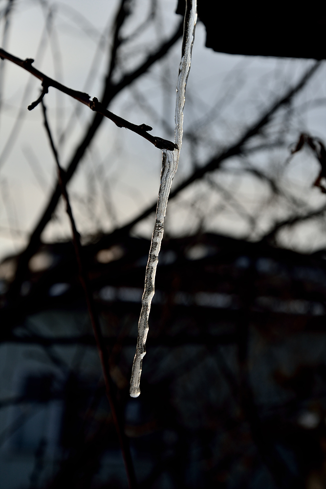고드름이 만들어지면서 나무 가지와 만나서 함께 고드름을 만드니