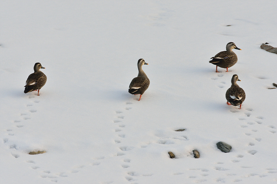 깨끗한 눈밭에 오리 발자국을 새기니, 새로운 그림이 그려집니다.