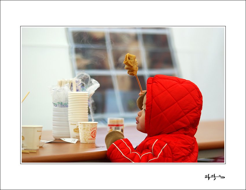 오뎅이 맛난지 한손에 들고 있으면서