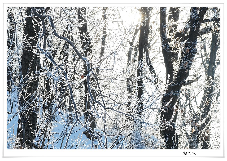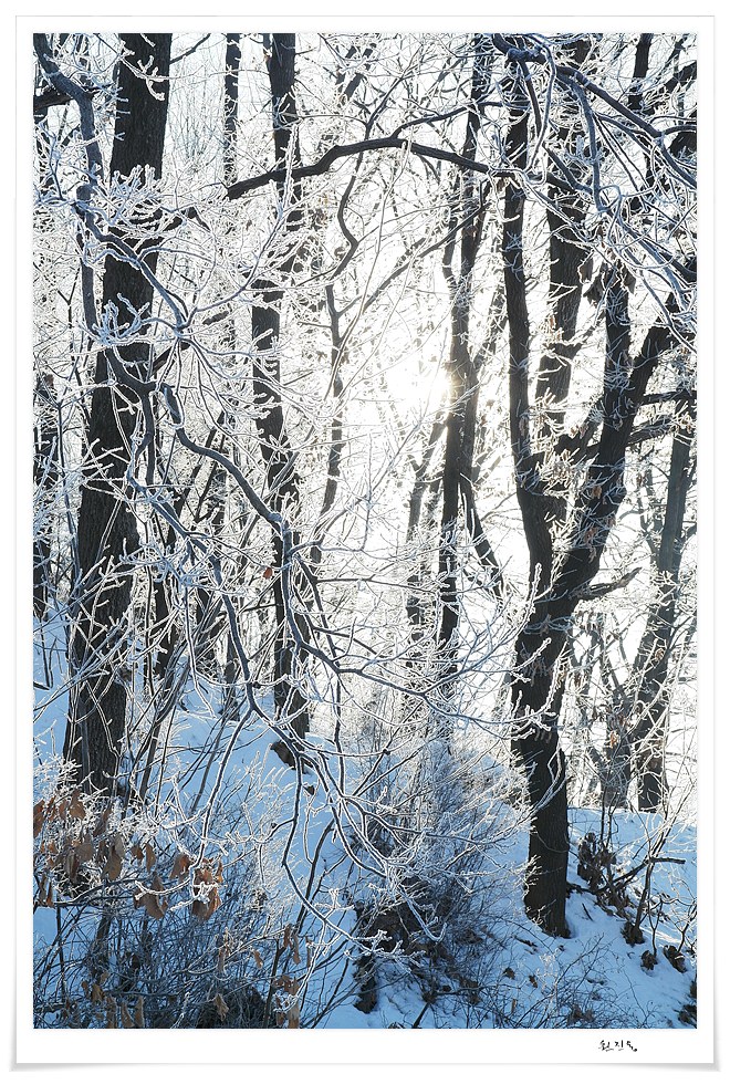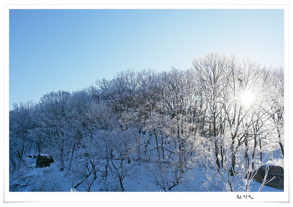 상고대 핀 나무에 따스한 햇빛이 내려옵니다..