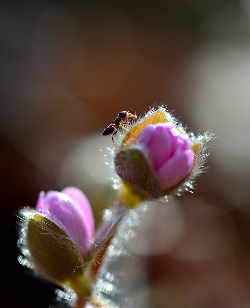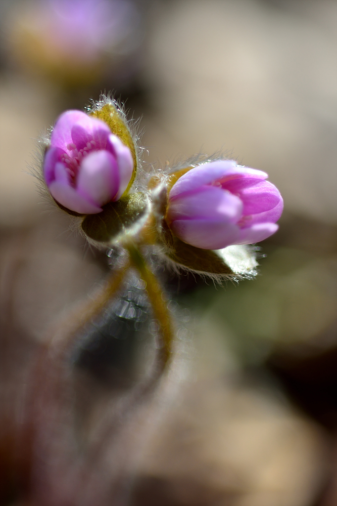 노루귀에 개미가 놀구있는 모습