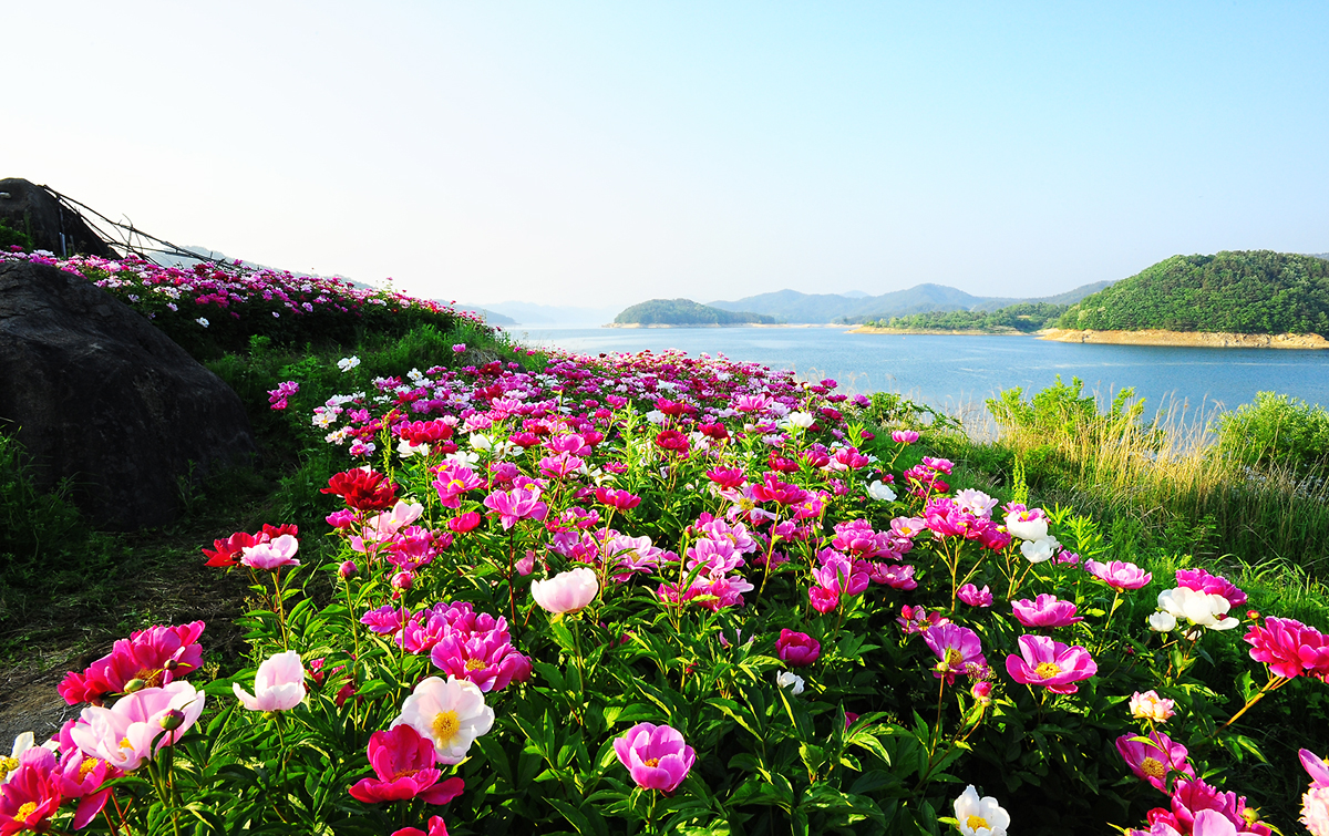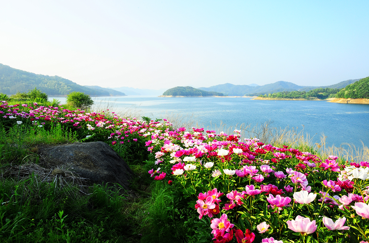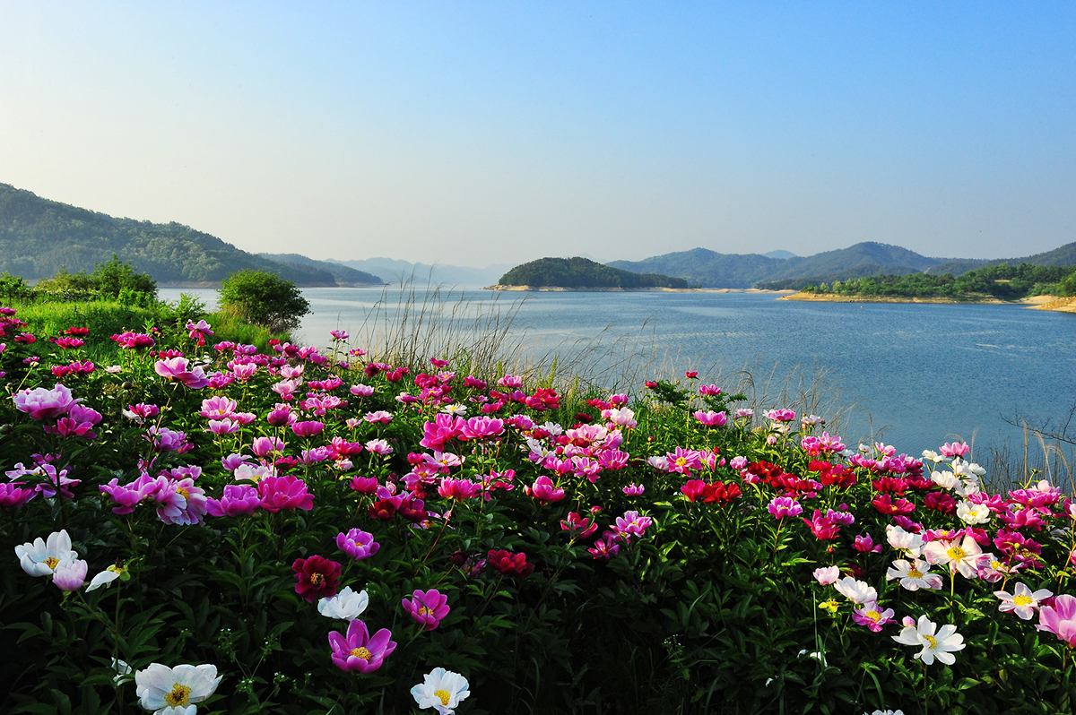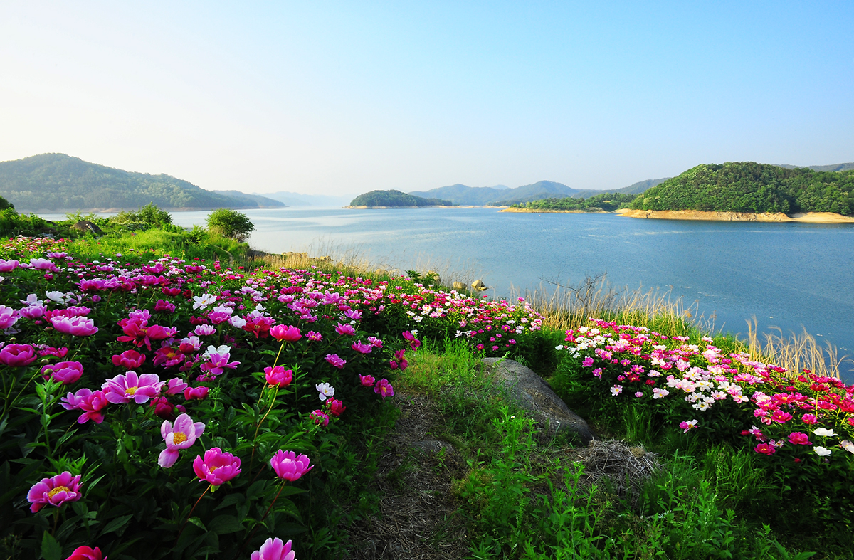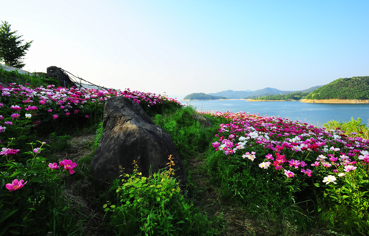 부산 내려가는길에 대청댐 작약꽃이 만개되어 칠영한 작품입니다