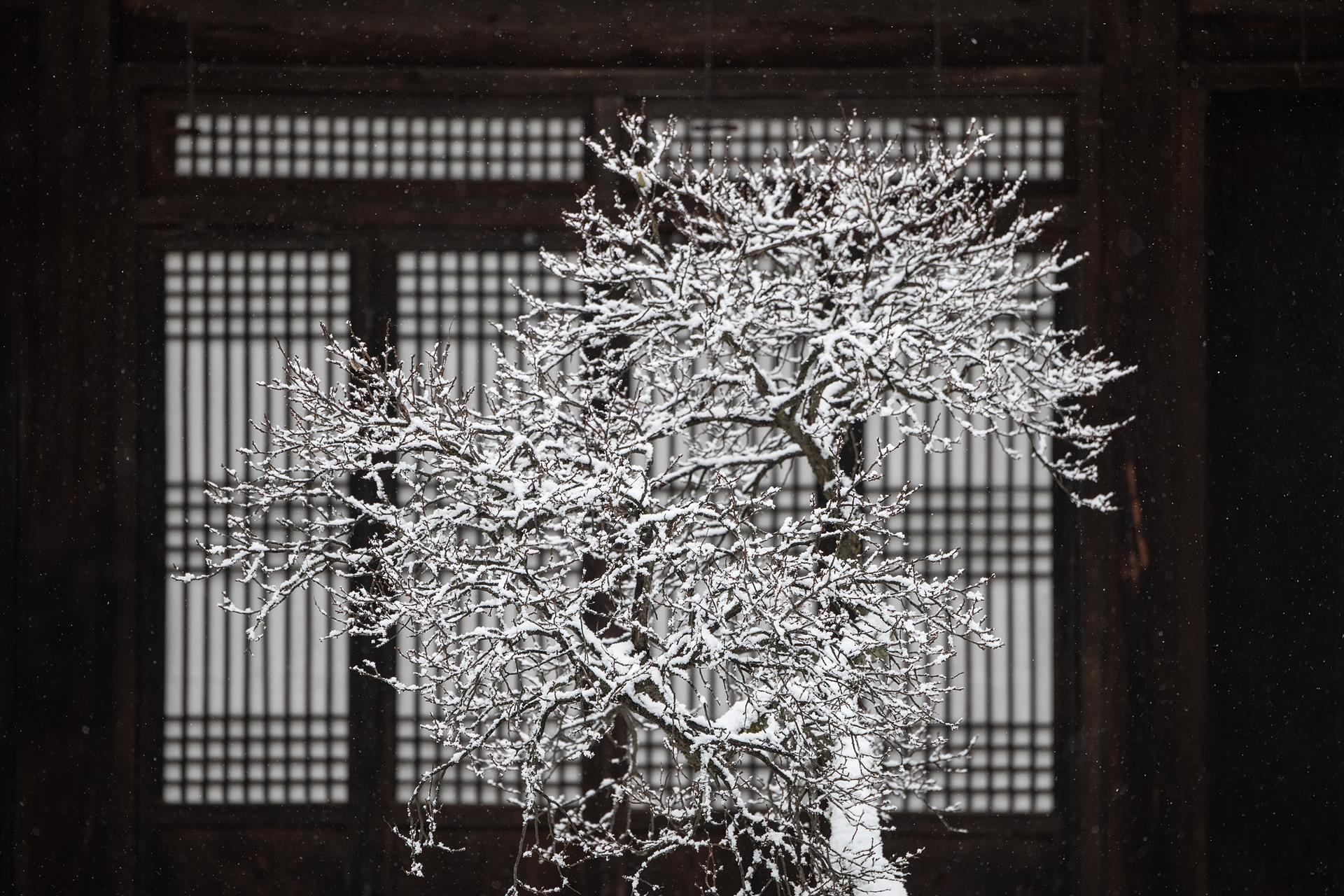 첫눈내린 현충사 홍매화 나무에 눈꽃이 피었습니다