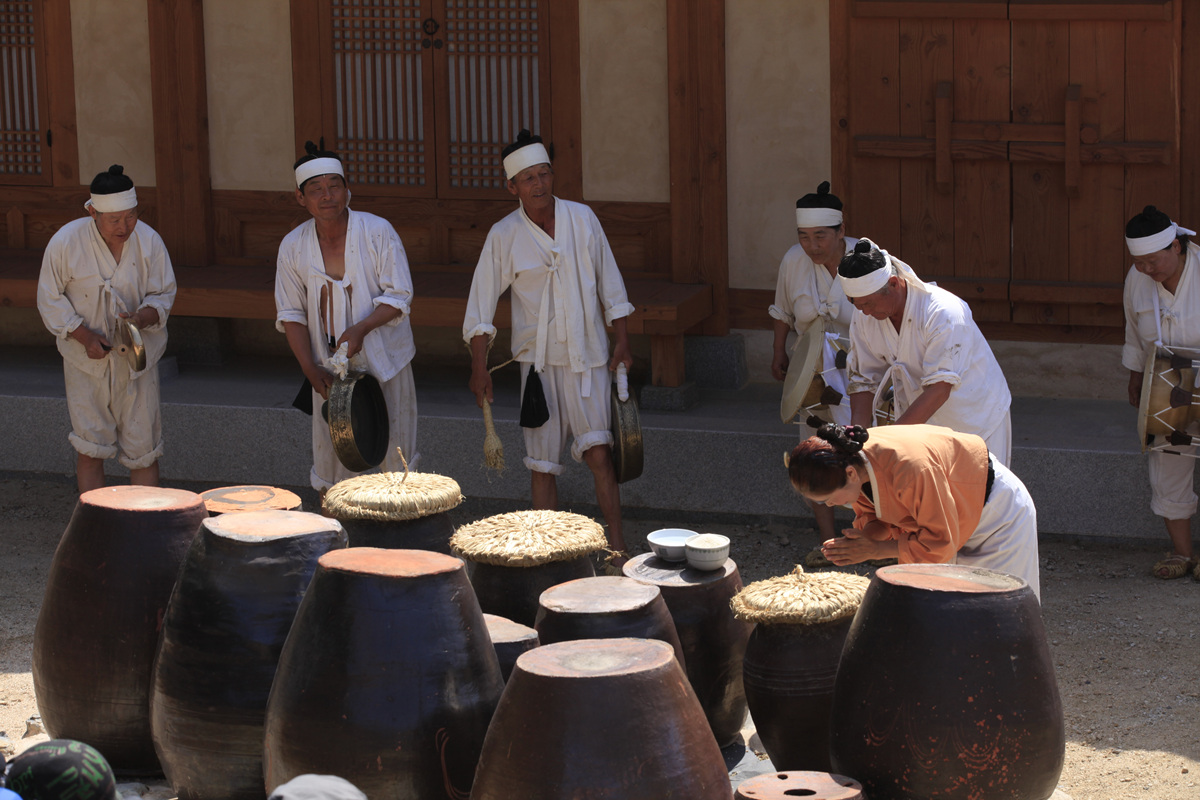 들노래 축제장의 선물 곡주는 아니고 물이다.