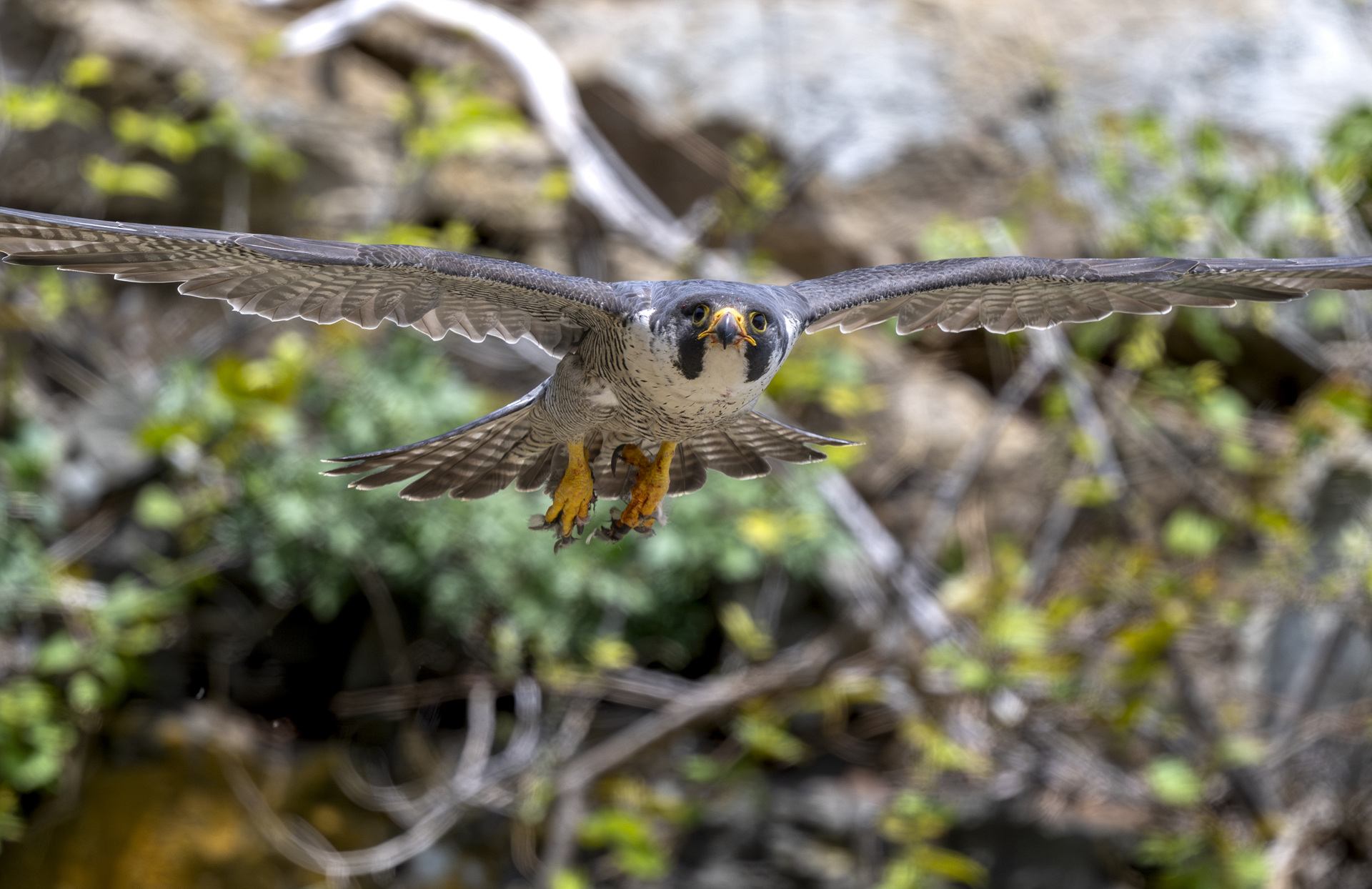 송골매가 새끼들과 식사 후 몸단장하러 가는 중...