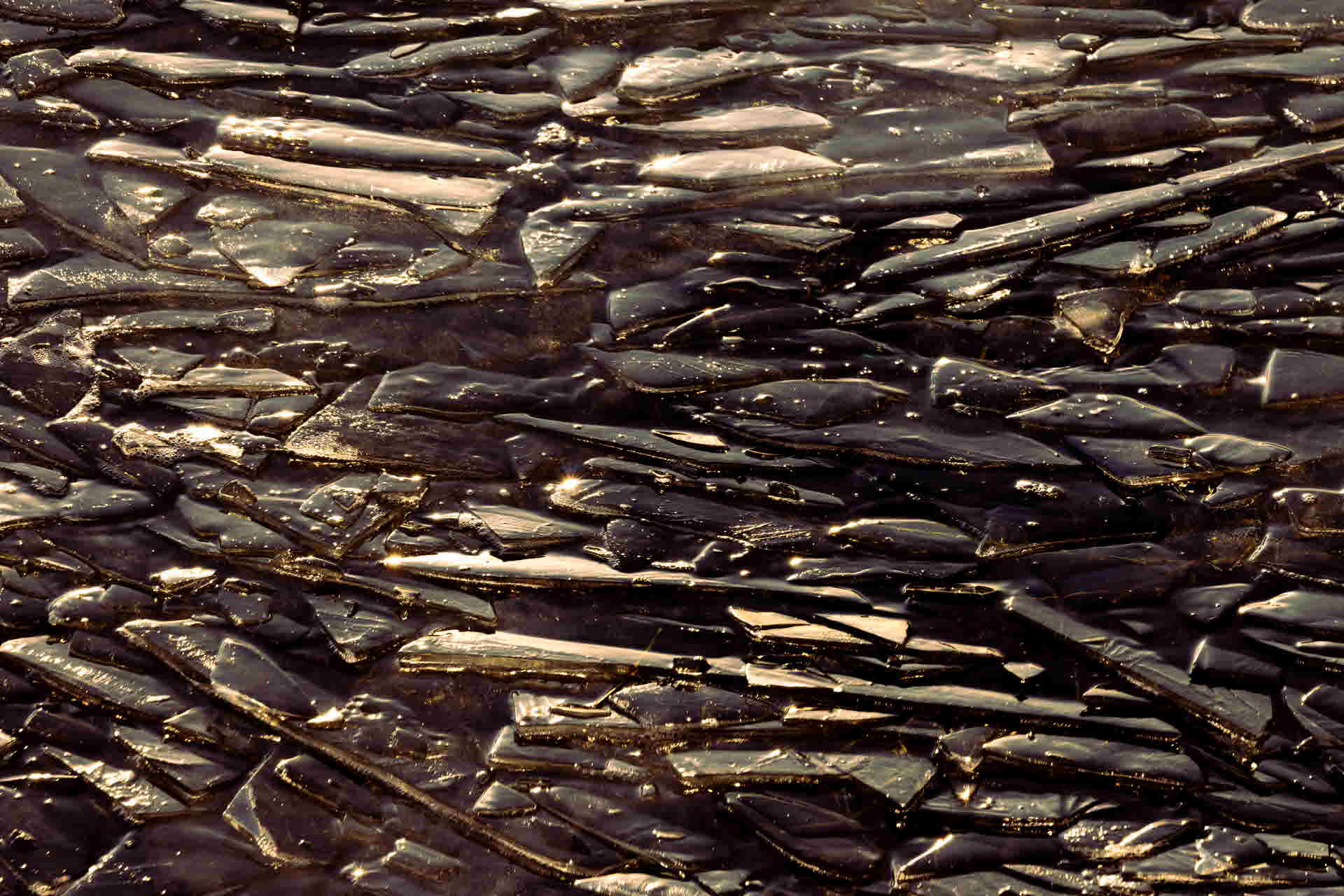 저수지의 얼음이 바람에 밀려와 켜켜이 쌓였네요.