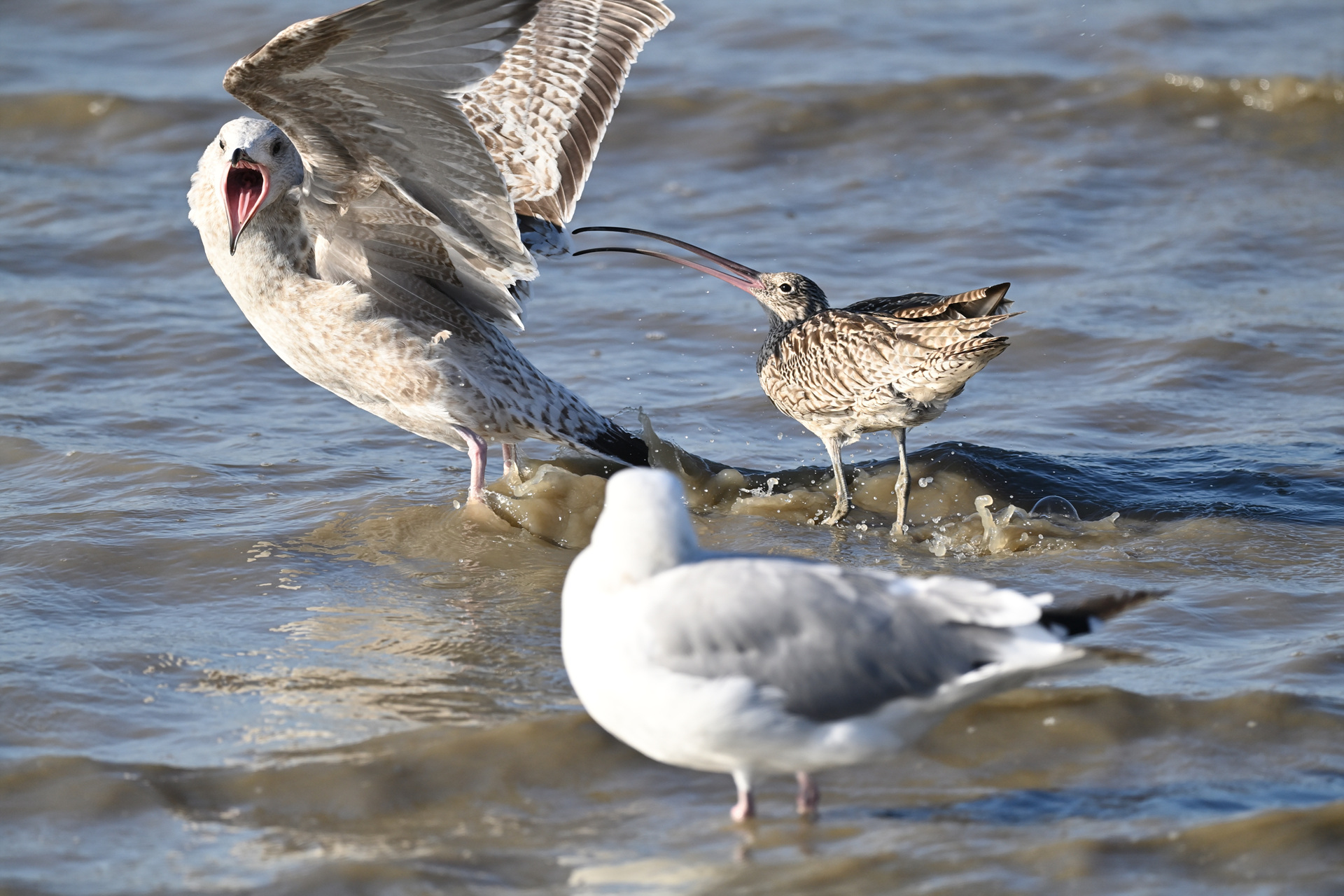 알락꼬리마도요한테 까불다 똥침맞는 괭이갈매기 유조...