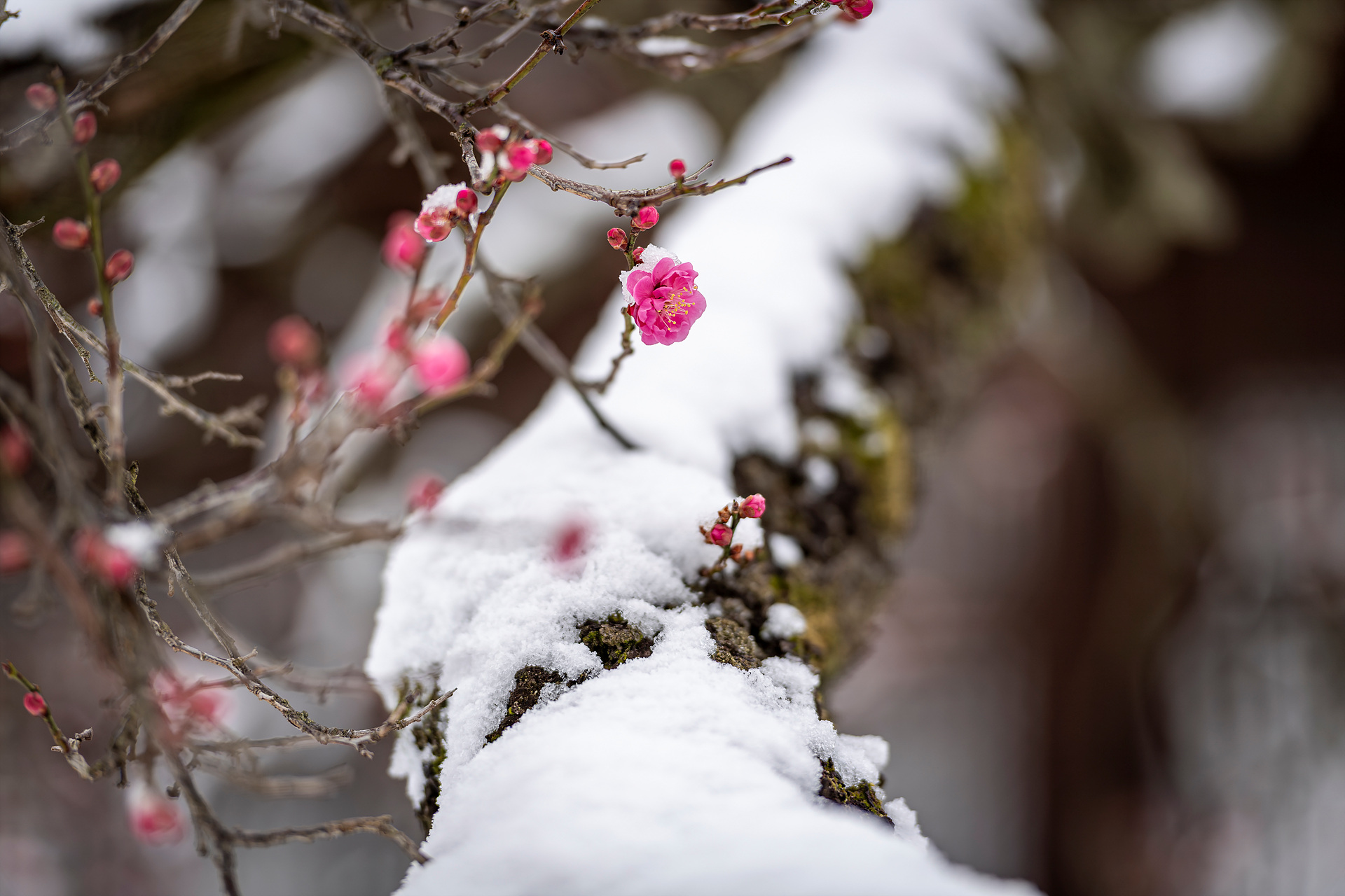 현충사 홍매화 딱 한 송이...