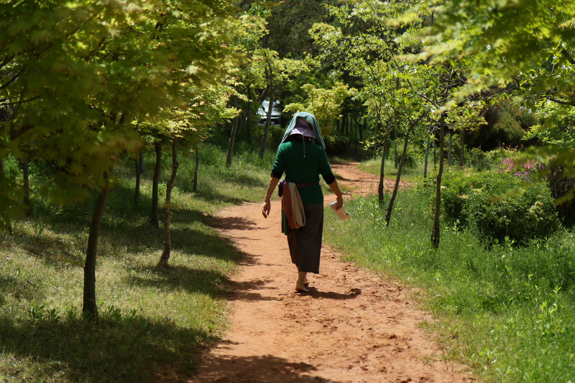 푸르름과 함께 맨발로 황토를 어루만지는 여인의 모습
