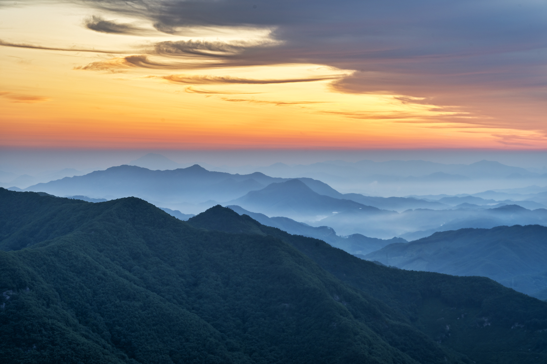 빛의 시작이 산을 깨웁니다