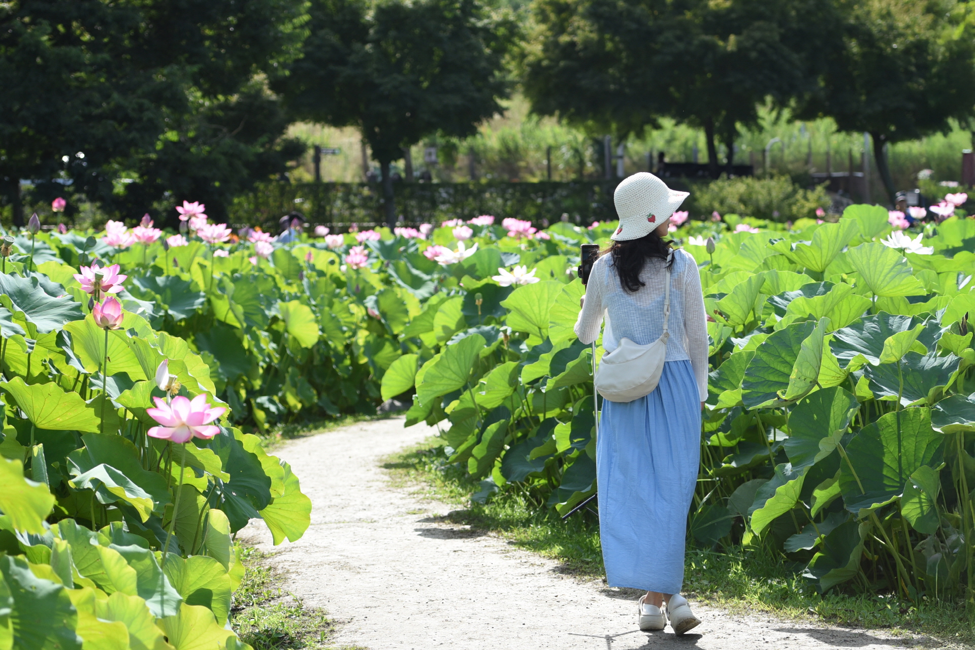 여인의 뒷 모습은 연꽃보다 더 고운 풍경이 되어 셔터를~