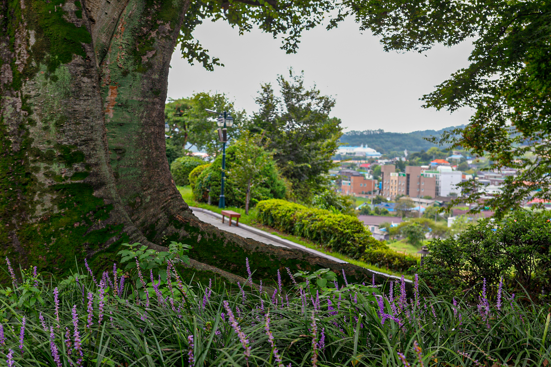성당 앞 느티나무 푸르른 가지 사이로 보이는 풍경이 좋았습니다.