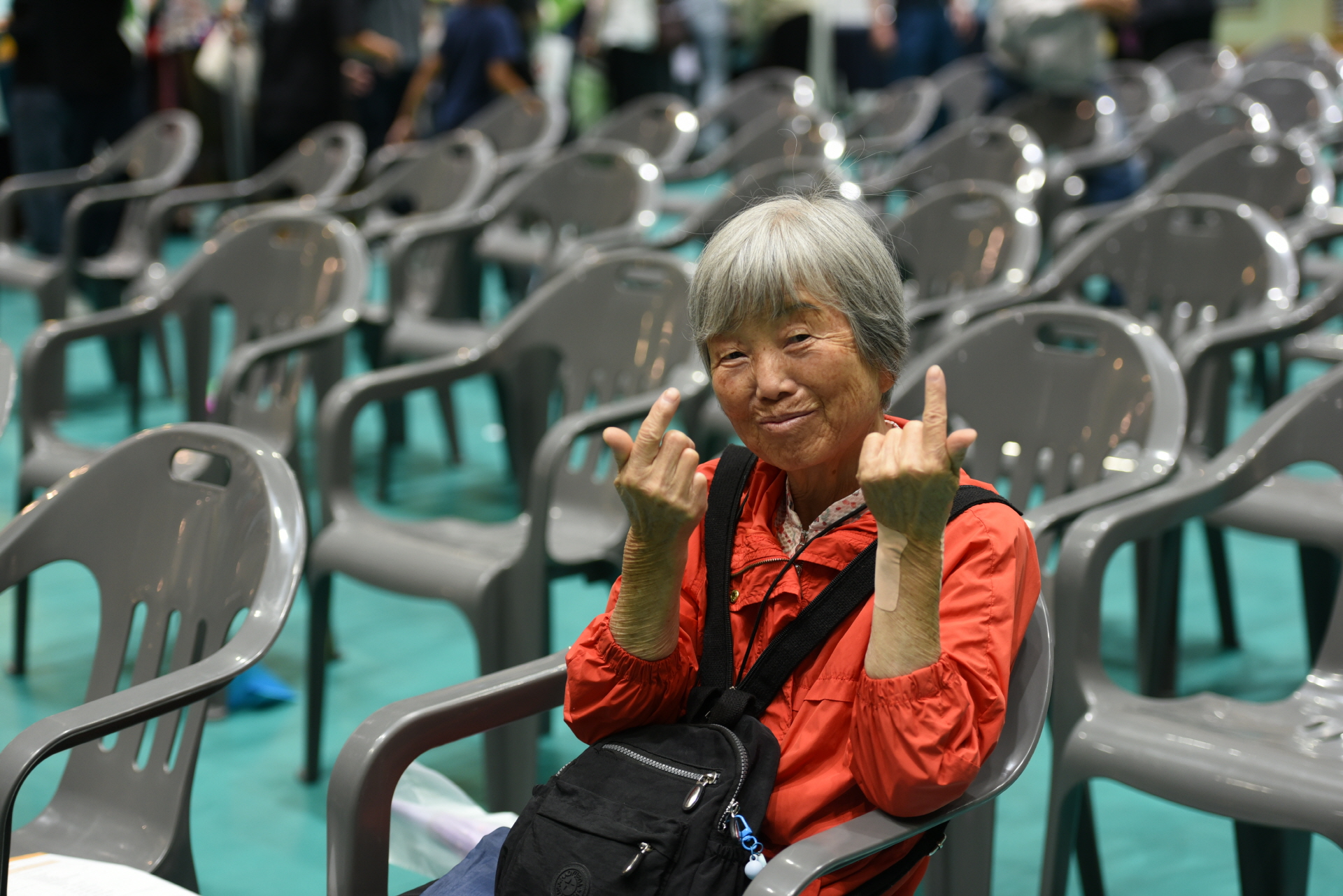 몸은 불편하지만 마음은 밝게 포즈로 웃어주신다